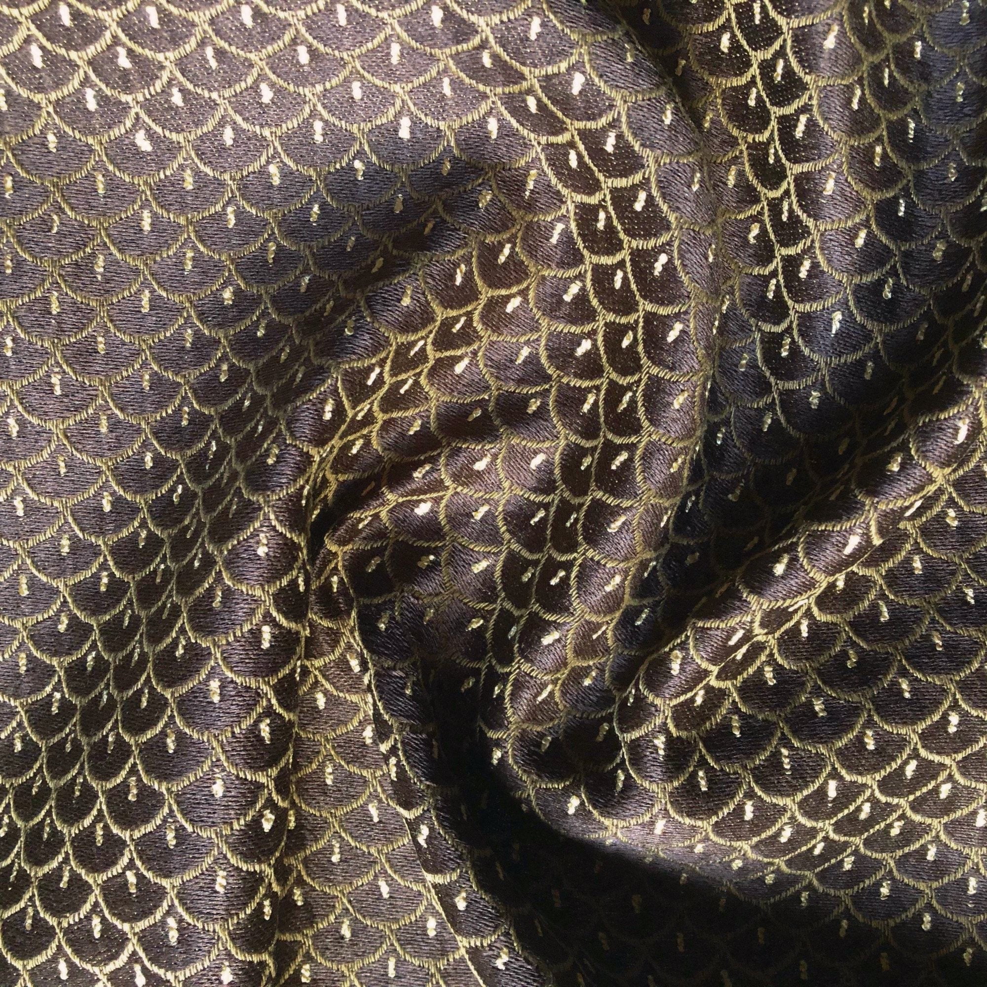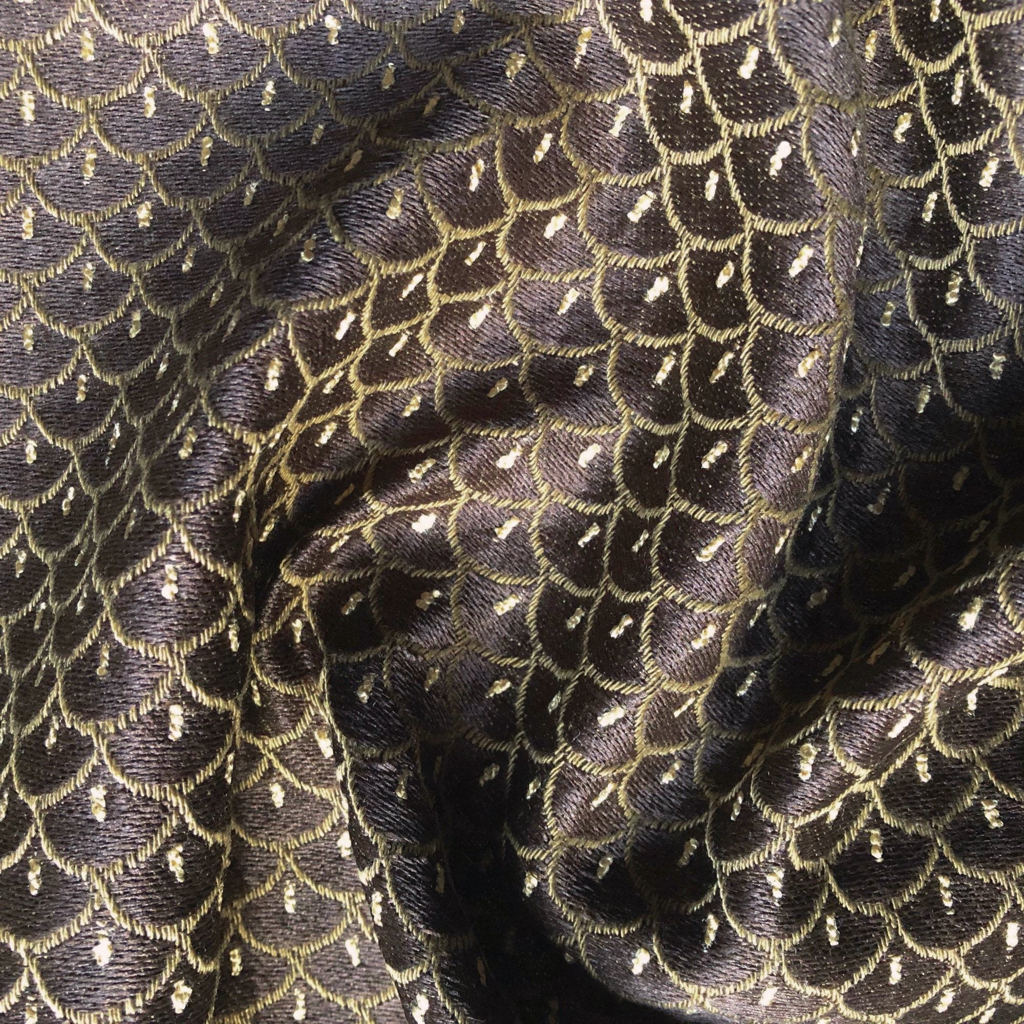 Adorn any interior with this Brown Art Deco Scalloped Upholstery Fabric 54", perfect for arts and crafts, DIY, upholstery, home decorating, and more. Give your bedding, chairs, cushions, windows and more a fresh new look with our selection of high quality fabrics curated by a team of trend leading designers. This luxurious jacquard upholstery fabric in a chocolate brown meets flair with versatility, offering the perfect personal touch for any Art Deco aesthetic. Designed and crafted by skilled textile artisans this fabric is made to last and never compromises on quality. All fabric is sold by the yard in 1-yard increments. Unfortunately, we do not accept returns on fabric orders but swatches are available.