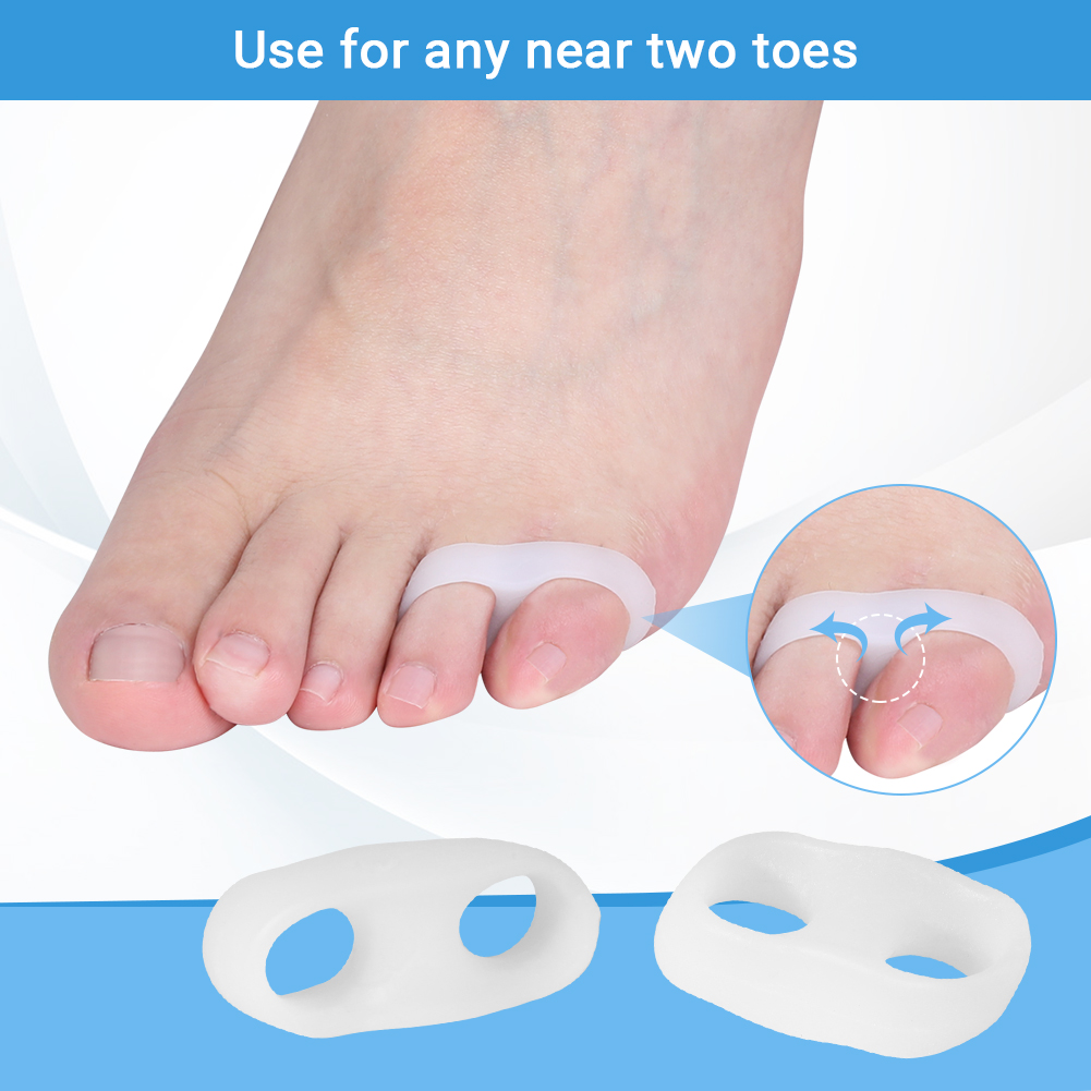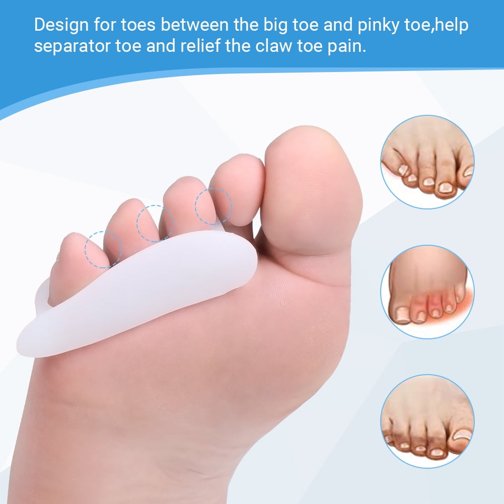 - Treat your feet with our carefully selected 8 pieces of gel toe separators set to meet the needs of different degrees of hallux valgus and relieves the pain of bunions.