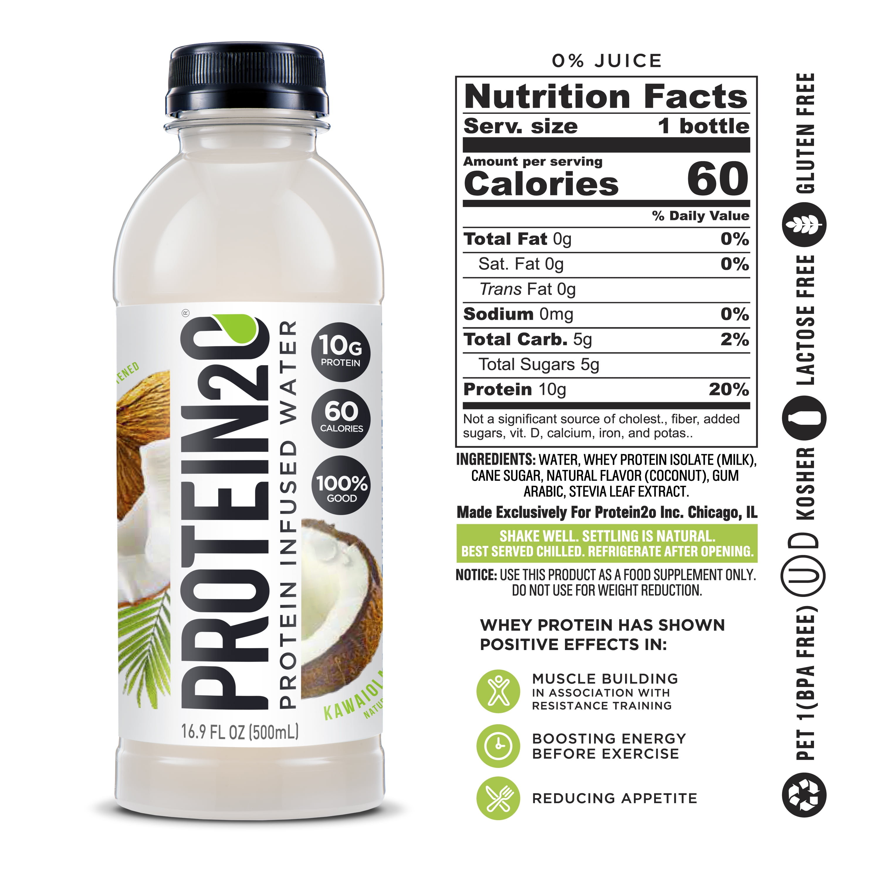 Protein2o 10g Whey Protein Infused Water, Kawaiola Coconut, 16.9 oz Bottle (Pack of 12)