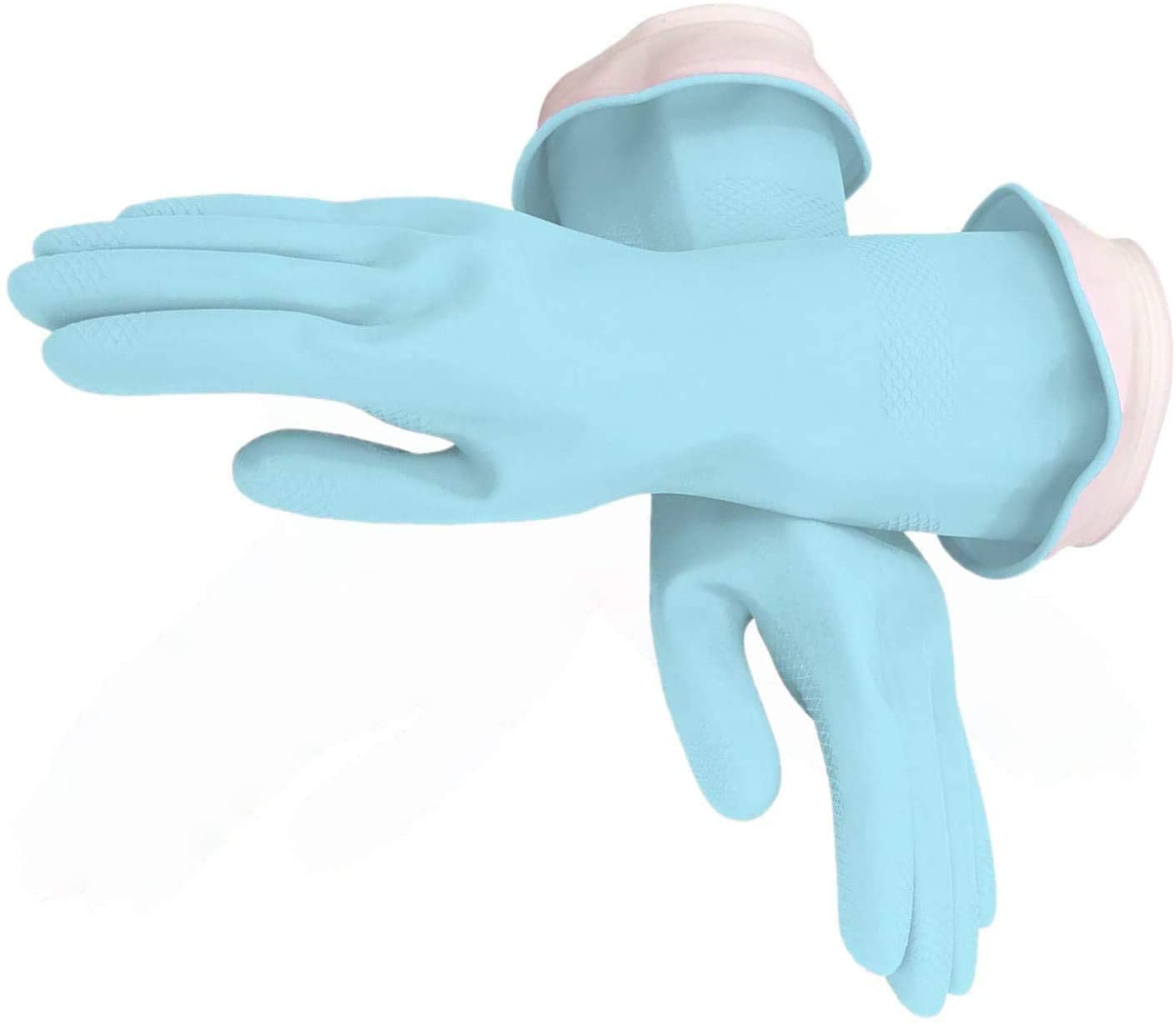 - The outer material is made of durable latex and the fingers are embossed with a texture for enhanced grip. For added comfort, the gloves are lined with a cotton flock lining and prevent your hands from the latex smell