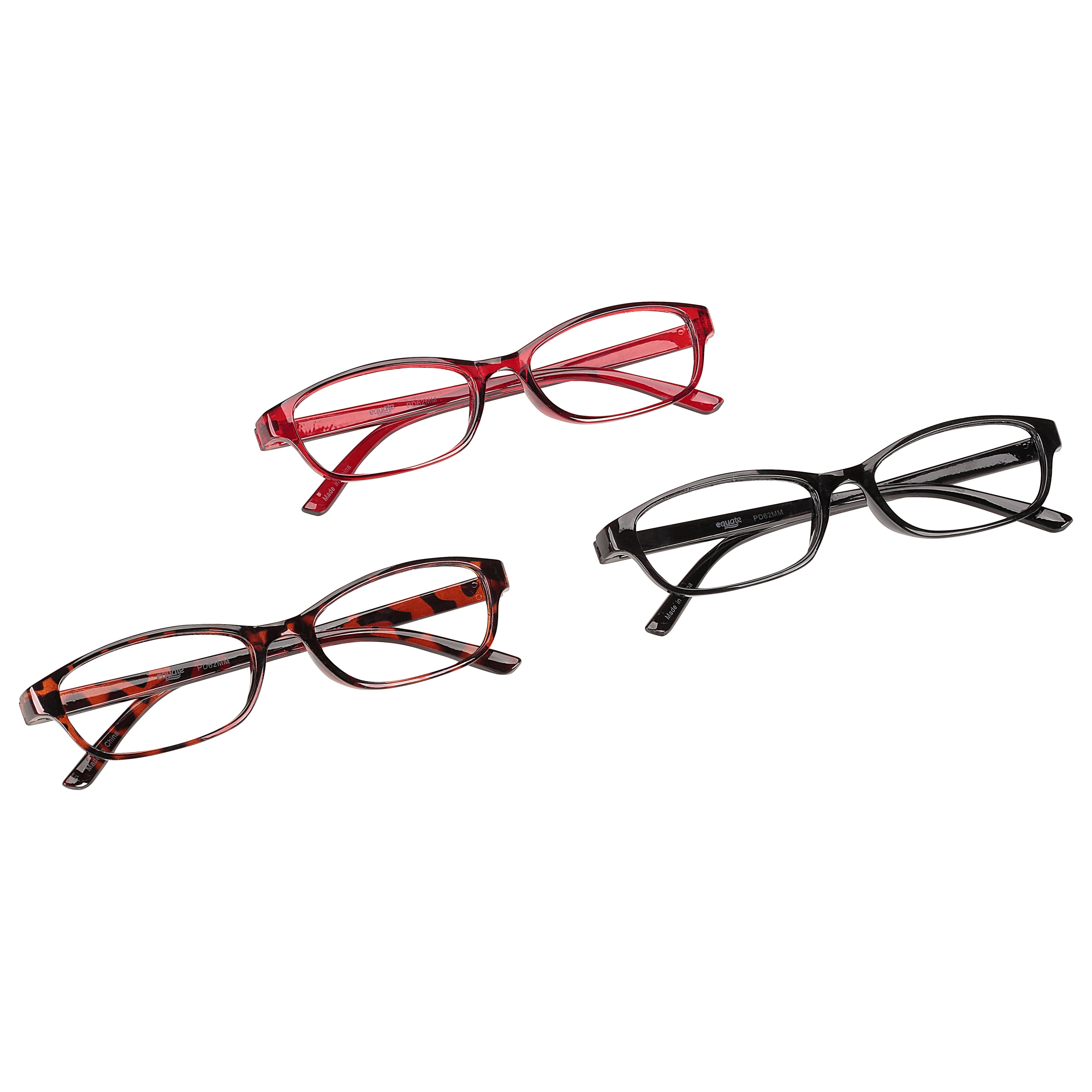 Both trendy and stylish, these reading glasses will block harmful blue ray light from your digital devices and screens. Duarble construction and spring hinges will give you maxium comfort. Each lenses are scratch resistant, blue light blocking, UV400 polycarbonate magnifying reading lenses. Each pack comes with 2 pairs, one solid gloss black frame, and one floral print frame. (rd014)
