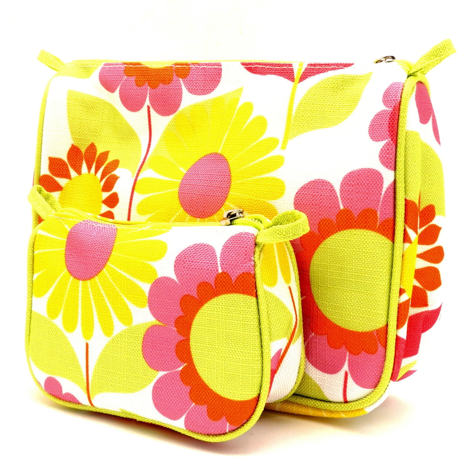 Clinique Yellow Orange & Pink Floral Cosmetic Makeup Travel Bag (2 pcs)