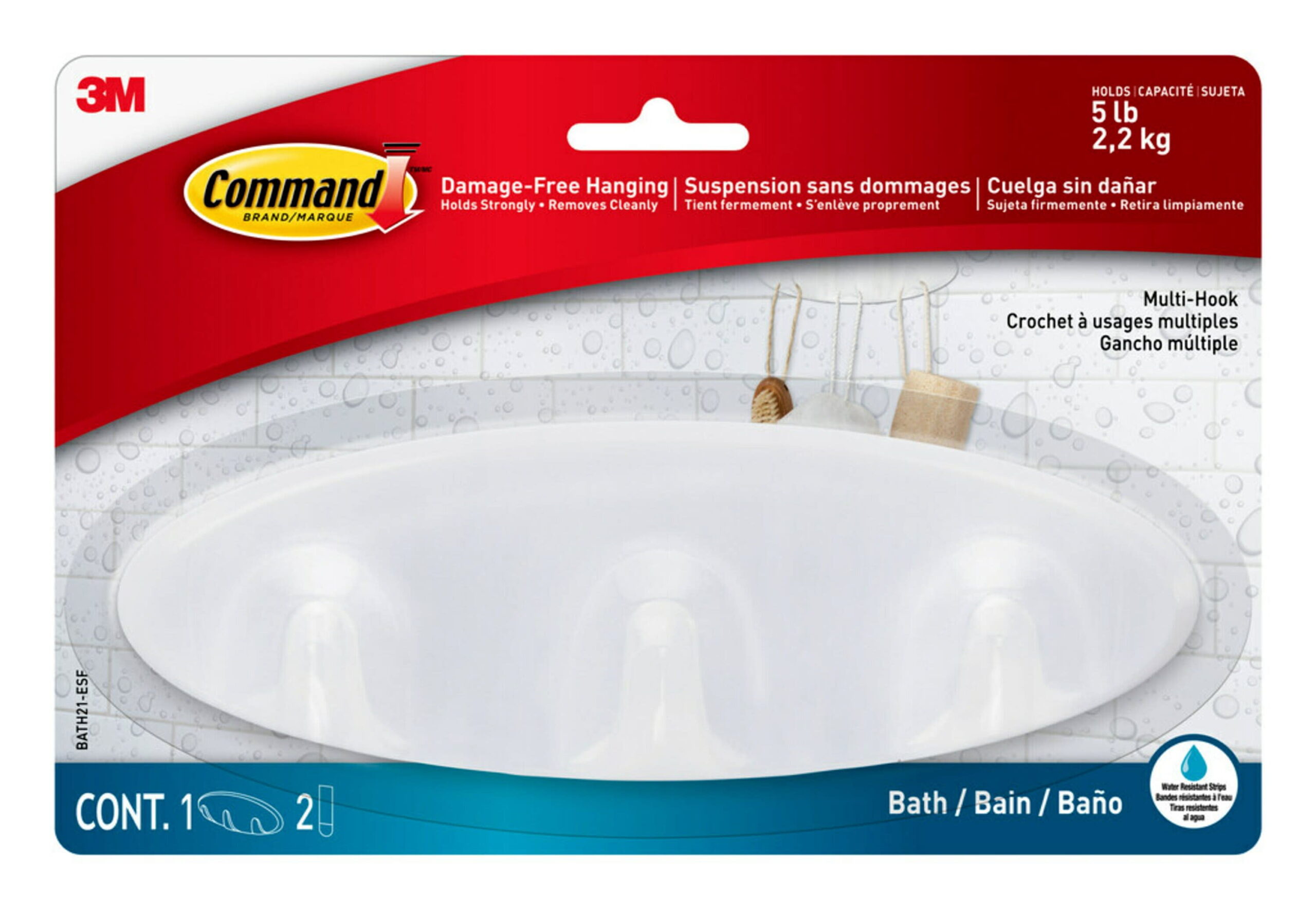 Command Bath Multi-Hook, 1 Wall Multi-hook, 2 Large Water Resistant Strips, Bathroom Organization