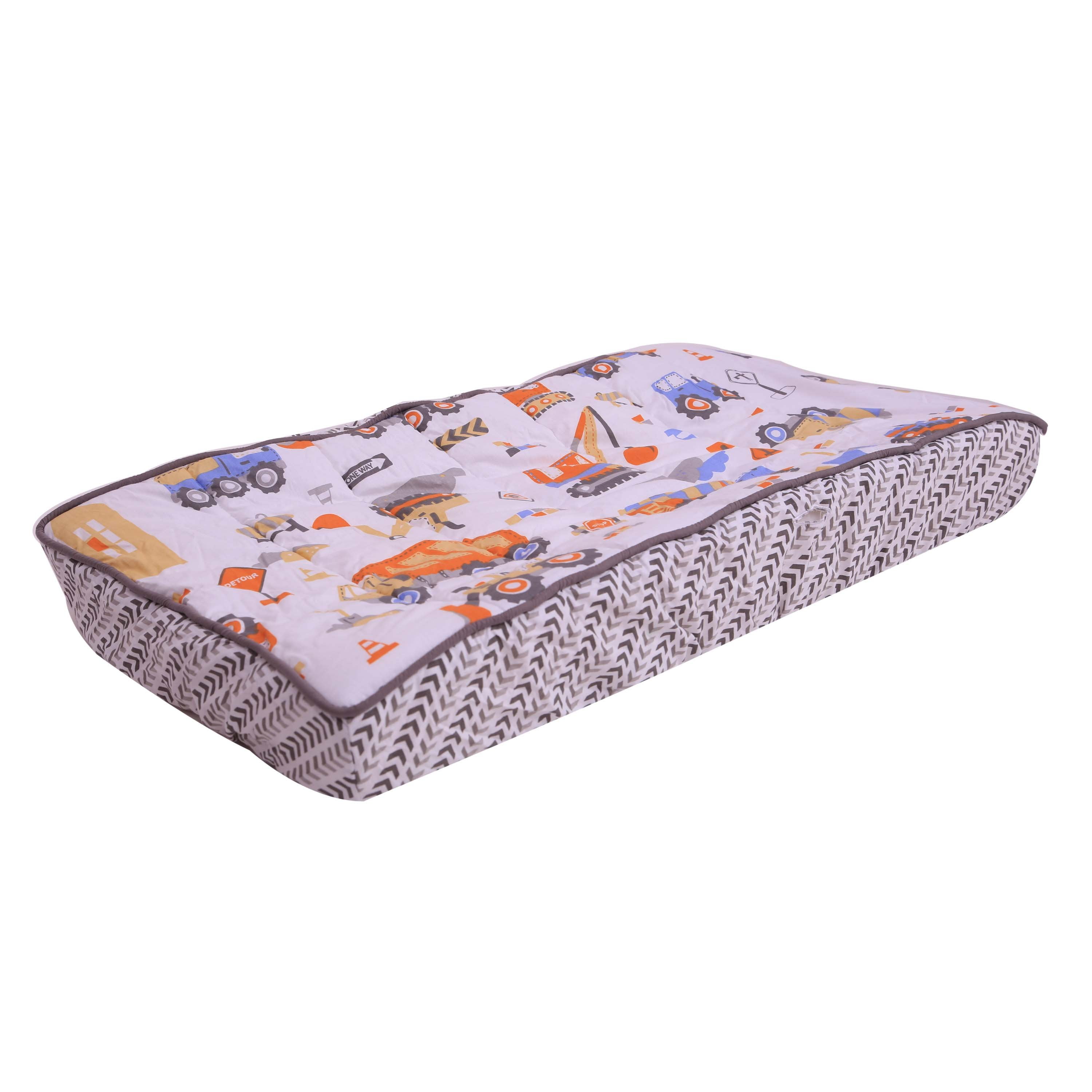 Construction Yellow/Orange/Grey/Blue Boys Quilted Changing Pad Cover