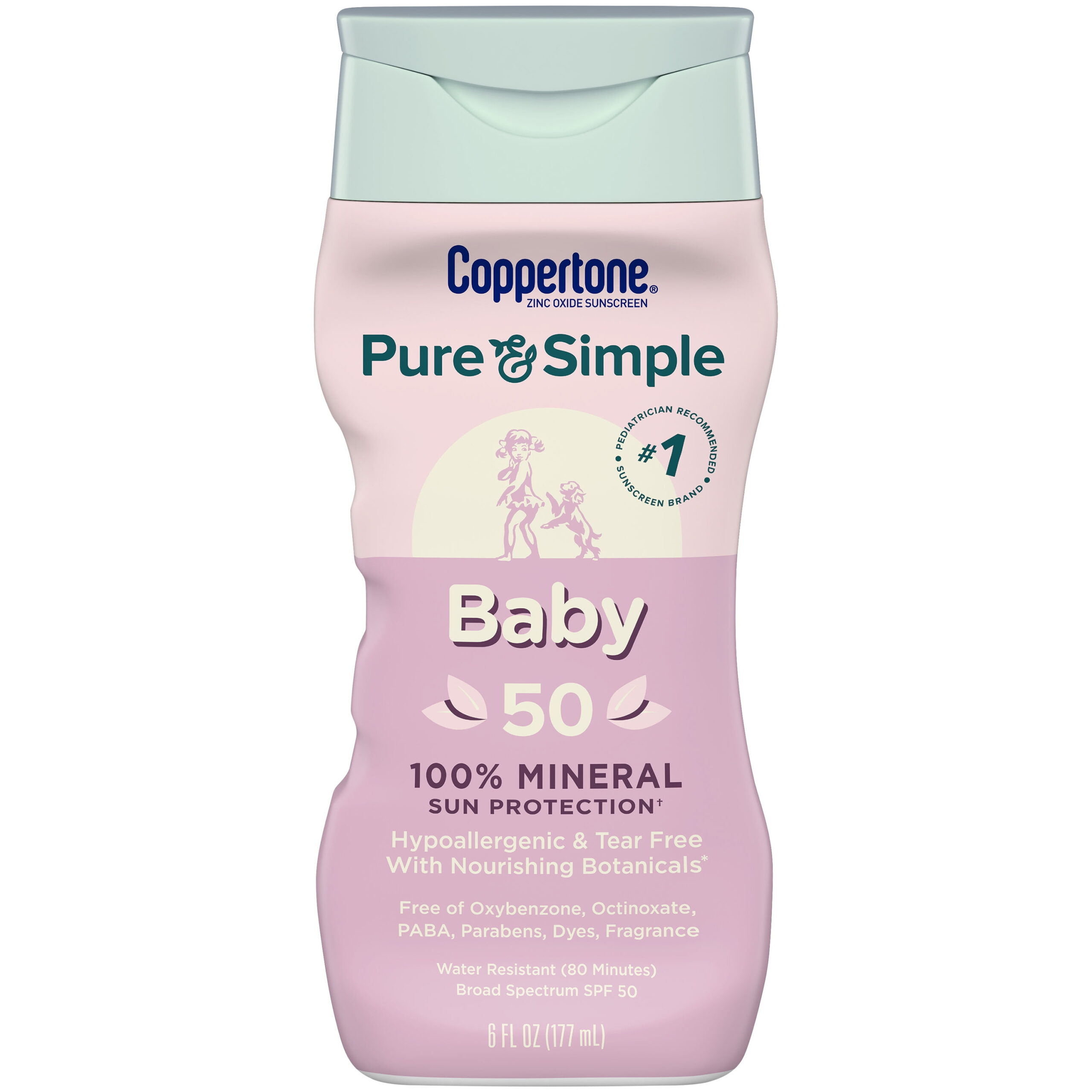 Coppertone Pure and Simple Baby Sunscreen Lotion SPF 50, 6 Fl Oz Bottle