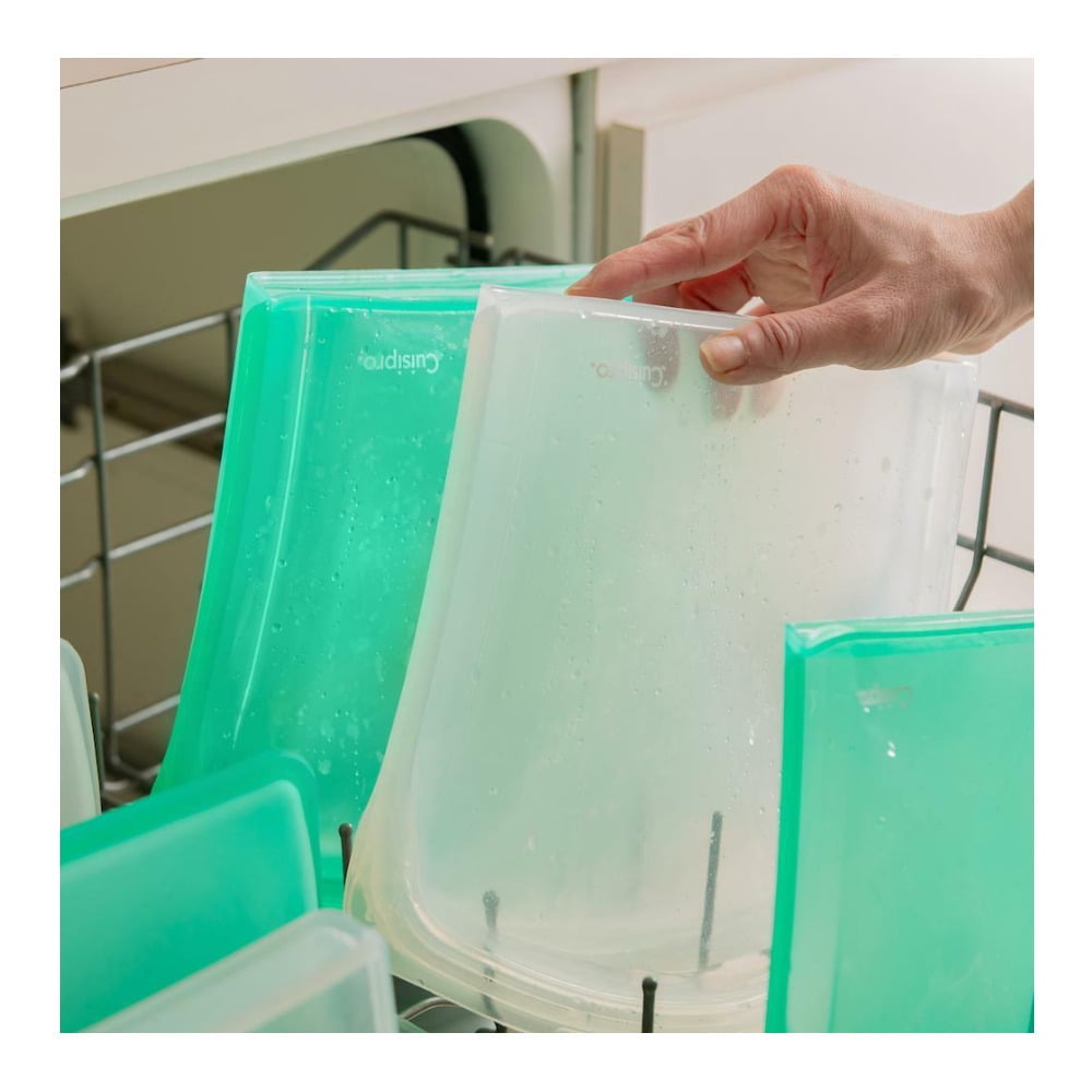 - Bundle Includes: 2 x Cuisipro Green Silicone Pack-it Bag (10 x 9-Inch, 67.5 fl oz, Seamless, 2000 ml)