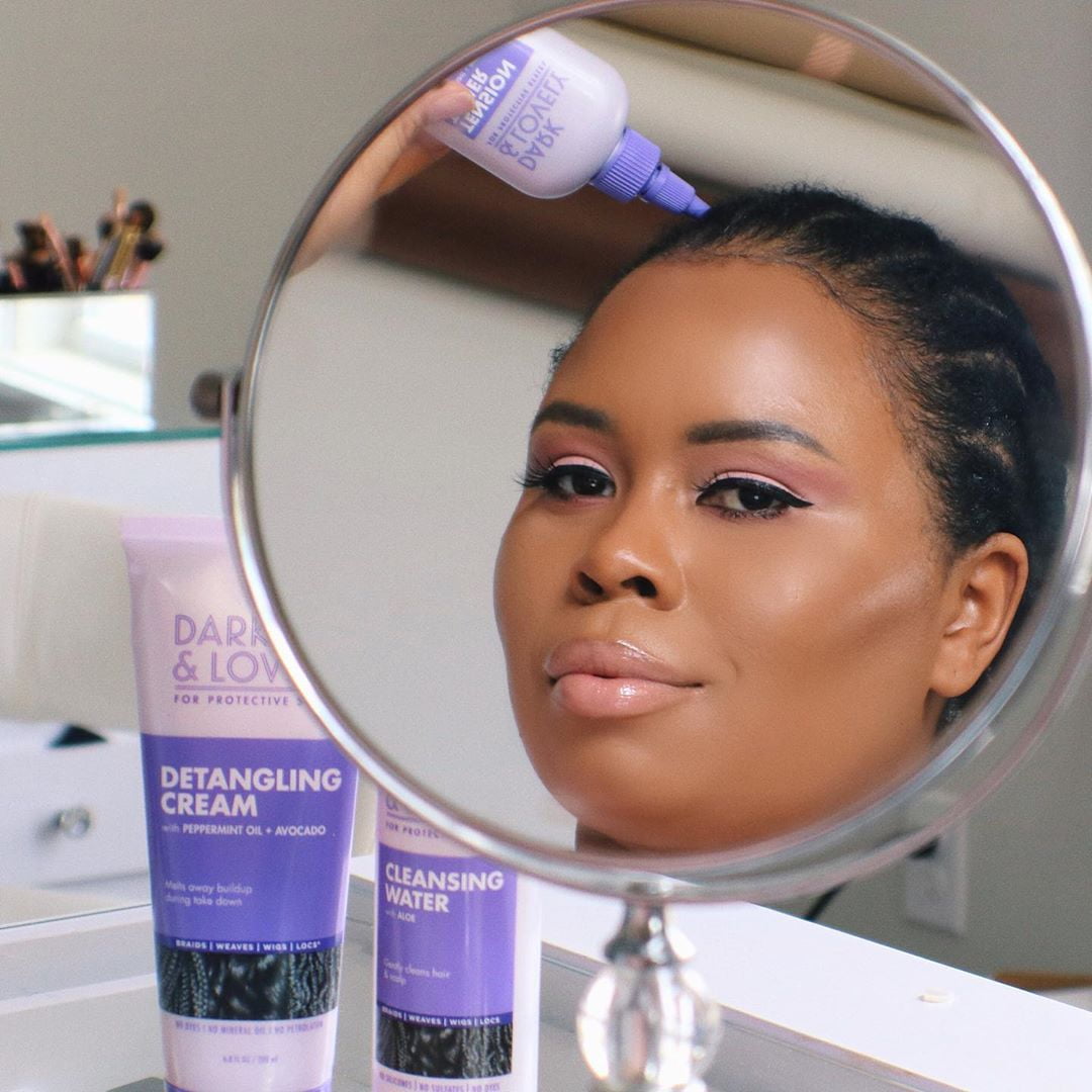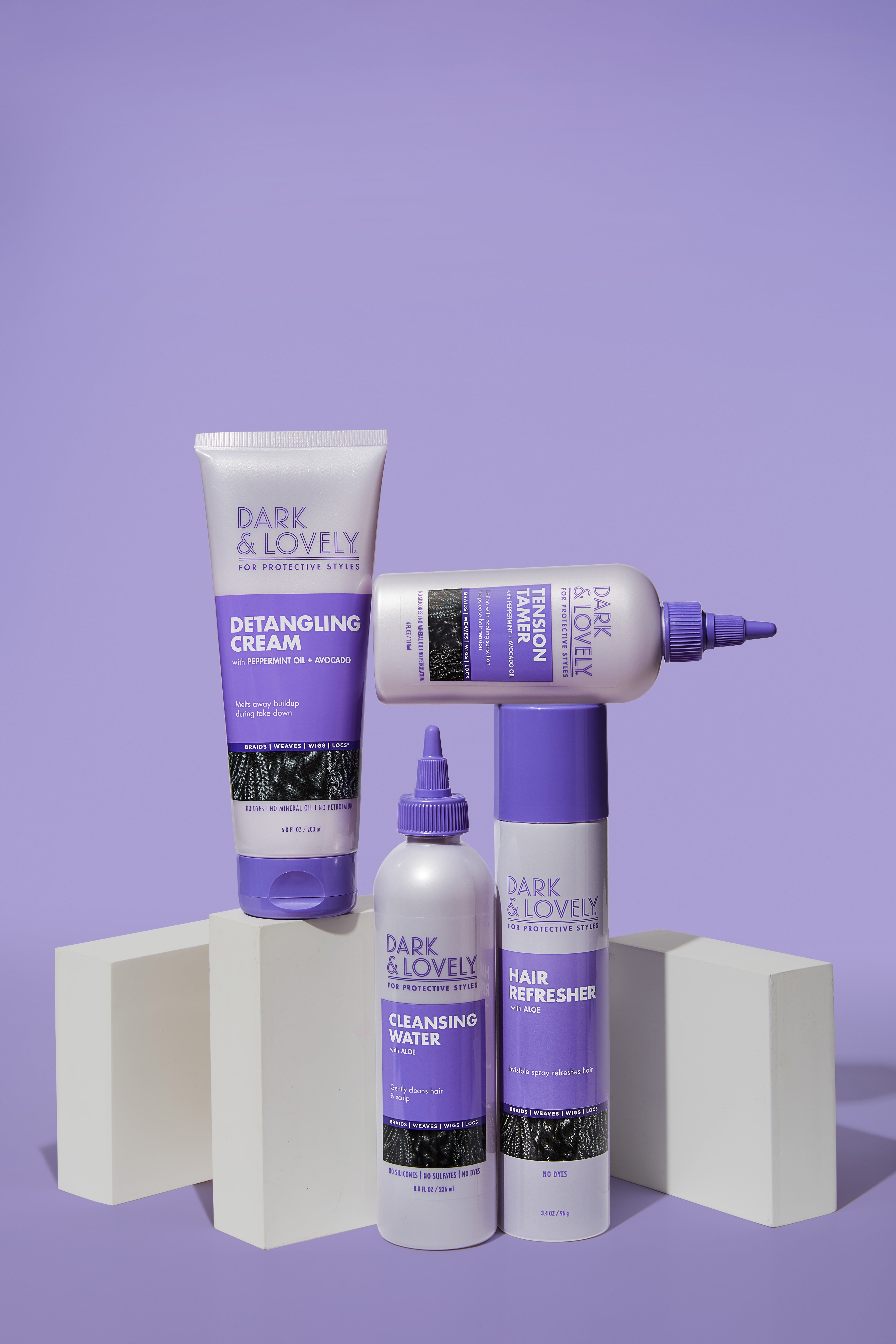 From install to takedown and everything in between, Dark and Lovely now offers a range of products designed to make wearing a protective style easier than ever. Dark and Lovely for Protective Styles tackles the issues with the three major phases of a protective style- after installation, during the wear of the style, and the take down for healthier-looking hair. Try all four- Tension Tamer, Cleansing Water, Hair Refresher and Detangling Cream Packaging may vary