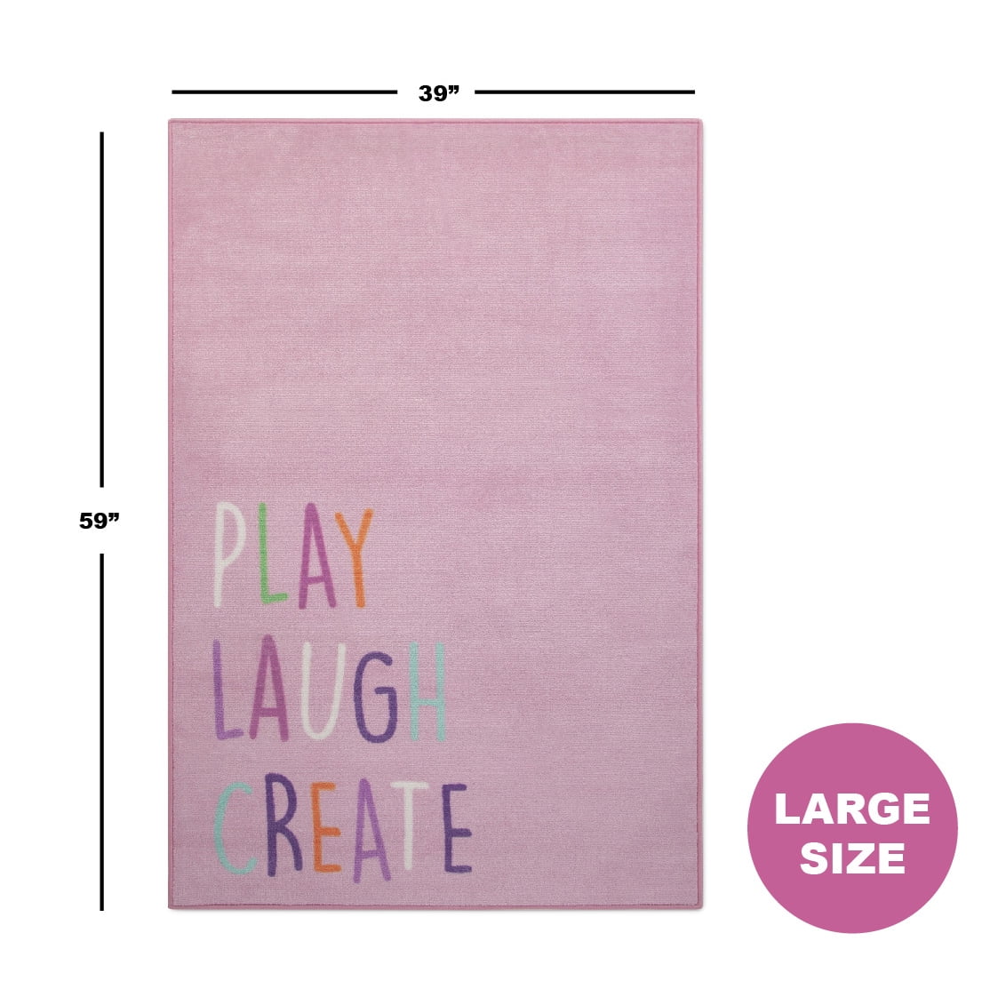 - PLAYFUL SAYING: A great option for your child’s bedroom or playroom, this rug features “Play, Laugh, Create” in fun colors