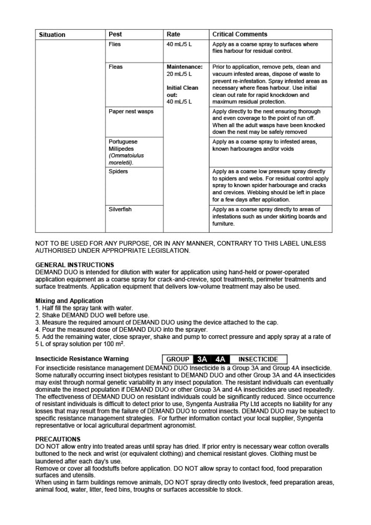Demand Duo Insecticide by Syngenta is for the control of various insect pests including Ants, Bedbugs, Cockroaches, Fleas, Flies, Portuguese Millipedes, Paper wasps, Silverfish and Spiders in domestic, commercial, public and industrial situations. Demand Duo provides rapid knockdown of even hard-to-control pests like German cockroaches while continuing to work for you up to 90 days. Compared to many products on the market, Demand Duo outpaces other formulations’ knockdown capabilities while also outperforming on longevity. It does not matter if Demand Duo is on a porous or non-porous surface, it performs strongly on almost all surfaces due to the unique formulation. Demand Duo Insecticide is intended for dilution with water for application using hand-held or power-operated application equipment as a coarse spray for crack-and-crevice, spot treatments, perimeter treatments and surface treatments. Application equipment that delivers low-volume treatment may also be used. For Indoor and Outdoor use.