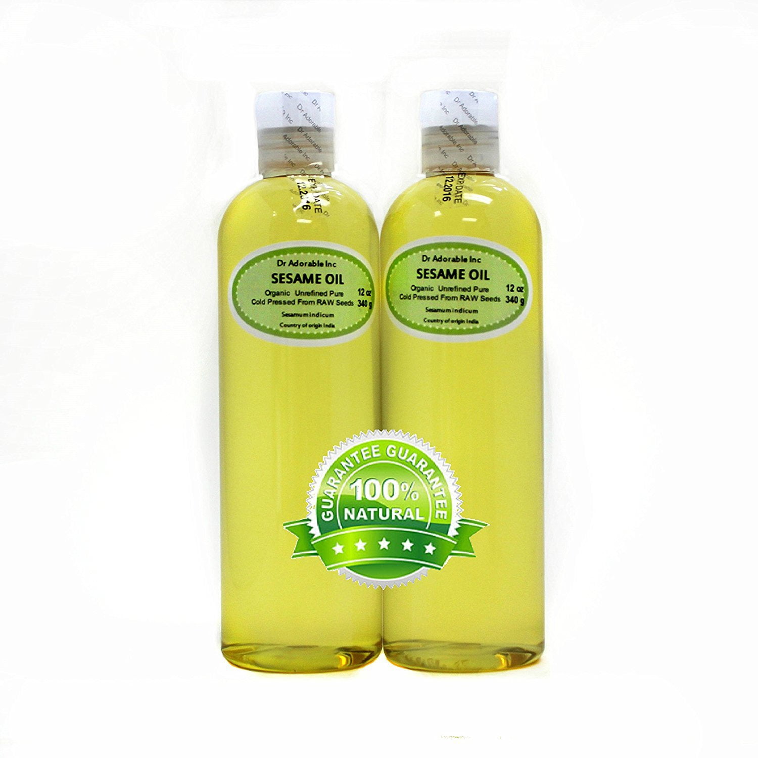 Botanical Name: Sesamum indicumExtraction Method: COLD PRESSED OF THE RAW SEEDSCountry: IndiaDescription: Appearance: Pale yellow to golden yellow liquid Odor: Characteristic odor Sesame oil is a traditional oil that has been used in various cultures around the world for at least 5000 years. Archeological excavations throughout the Middle East revealed the use of sesame oil dating back to 3000 BC. Persia and India were also cultivating this tiny treasure for its oil. Sesame oil was the ideal base for making exotic perfumes, a practice that dates back to the Babylonians circa 2100 to 689 BC. The Babylonians also used the oil for cooking, and sesame cakes. They also made wine from sesame and even perfected a brandy employing sesame seeds. Sesame oil is rich in monounsaturated and polyunsaturated fatty acids. Unlike most other modern-day oils containing high amounts of polyunsaturated oil, sesame oil is not prone to oxidation due to the presence of sesamin and sesamol, natural antioxidants.Dr. Adorable – 100% Pure Sesame Seed Oil from RAW Seed Unrefined Organic Cold Pressed – 24 oz