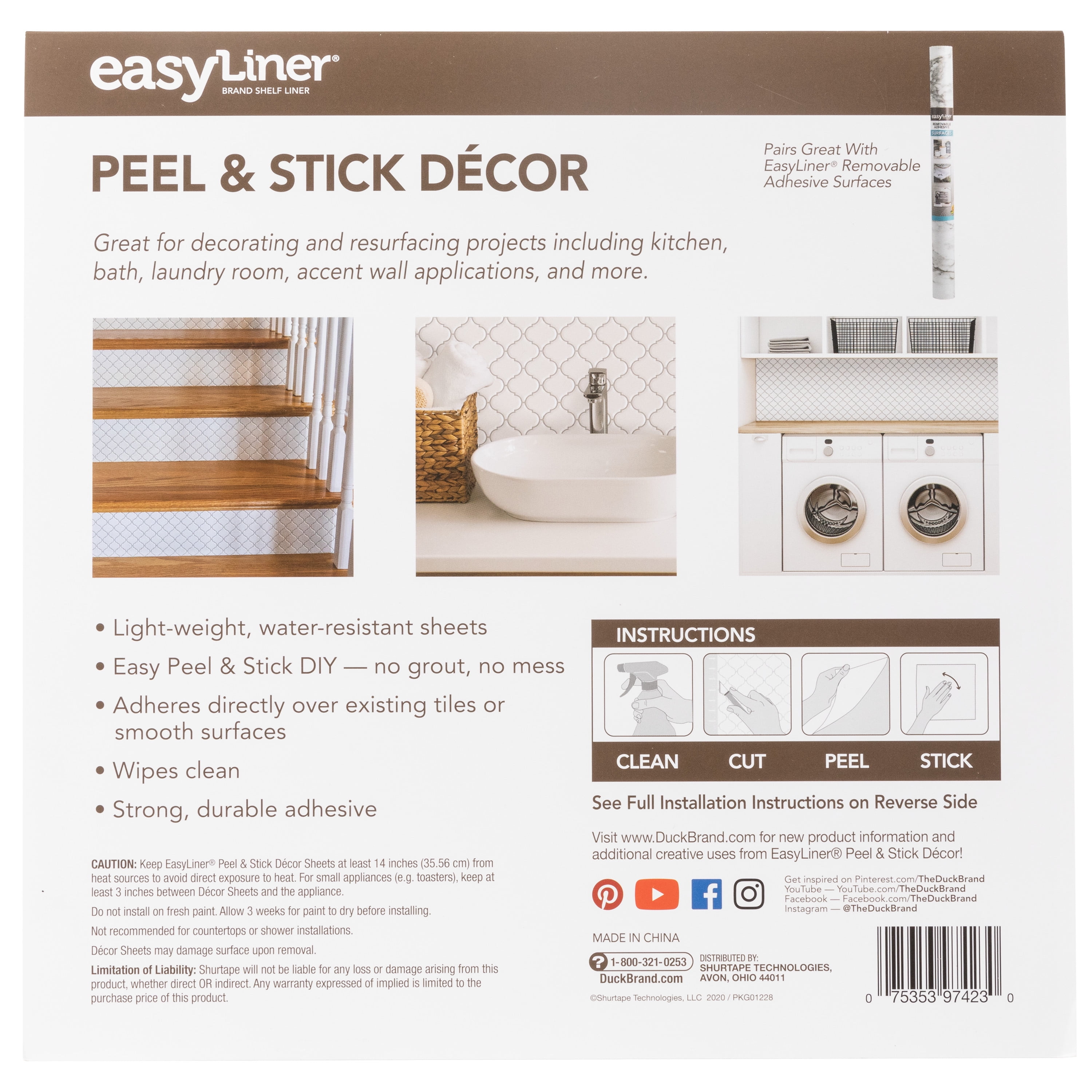 Easily and inexpensively add contemporary style to your home with Duck Brand EasyLiner Adhesive Solids Shelf Liner. Instantly give shelves, cabinets, and household objects a new look without the hassle of remodeling. The pre-printed paper backing makes it easy to measure and cut liner to size. Plus, it is easy to wipe clean and works great with die cutting machines. This shelf liner is perfect for resurfacing shelves and drawers. One roll contains 15 feet of white adhesive shelf liner laminate. Start adding contemporary style to your home and add EasyLiner Adhesive Laminate 20 in. x 15 ft. Shelf Liner, White, to your shopping cart today!