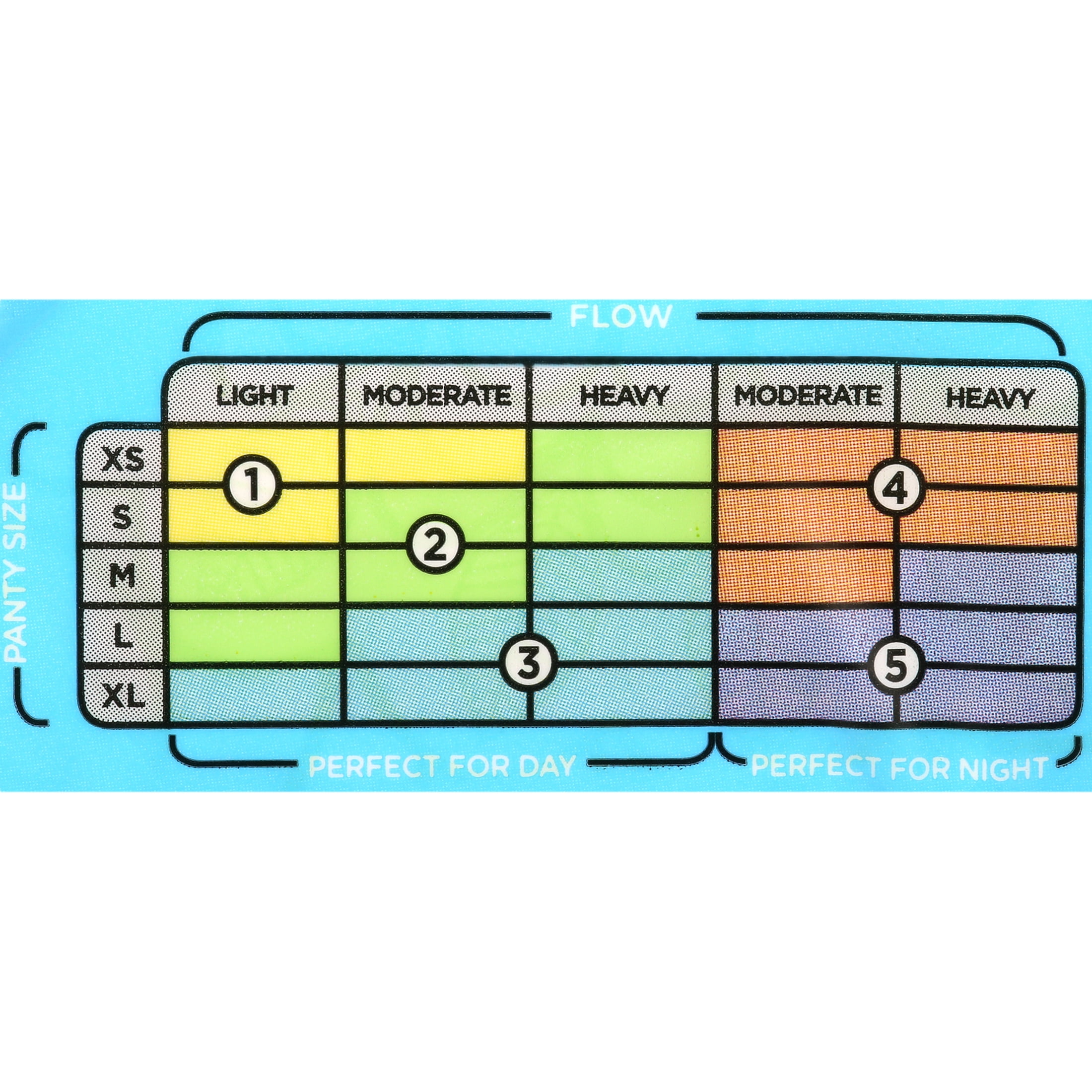 - Absorbent core locks away moisture for up to 8 hours of protection from leaks