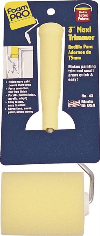 FOAMPRO 43 Maxi Trim Roller, Acrylic, Alkyd, Latex Paint, 3/8 in Thick Nap, Foam Cover