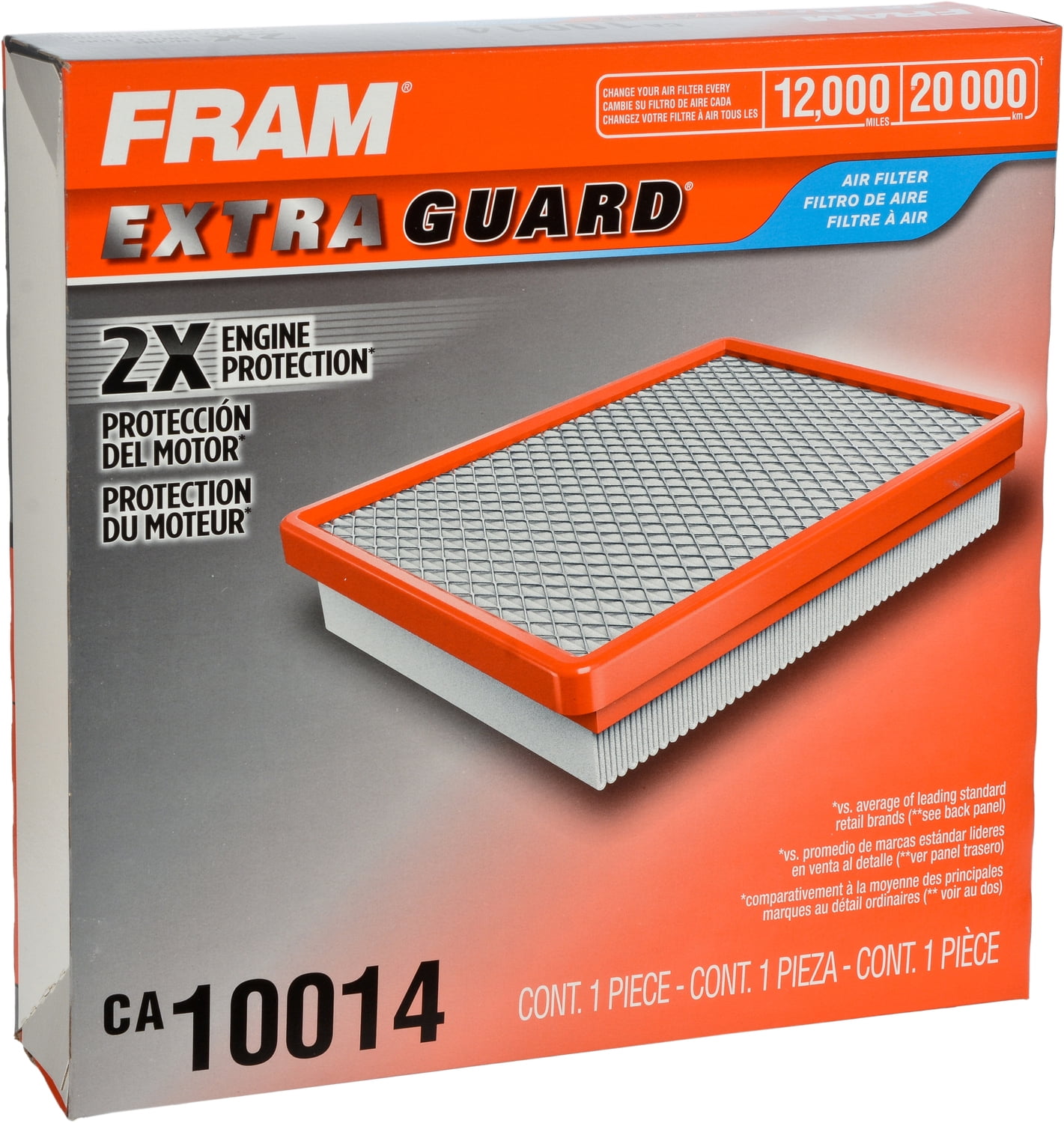 FRAM Extra Guard Air Filters are your first line of defense preventing damaging road dust and dirt particles from entering your engine. Extra Guard Air Filters are engineered with an advanced filter media that lets through 2X less dirt than average leading standard retail brands AND protects your vehicle’s engine up to 12,000 miles. Replacing a dirty air filter with a new FRAM Extra Guard Air Filter can help increase horsepower, acceleration and overall engine performance. Get better protection with ease and install a new FRAM Extra Guard Air Filter today!