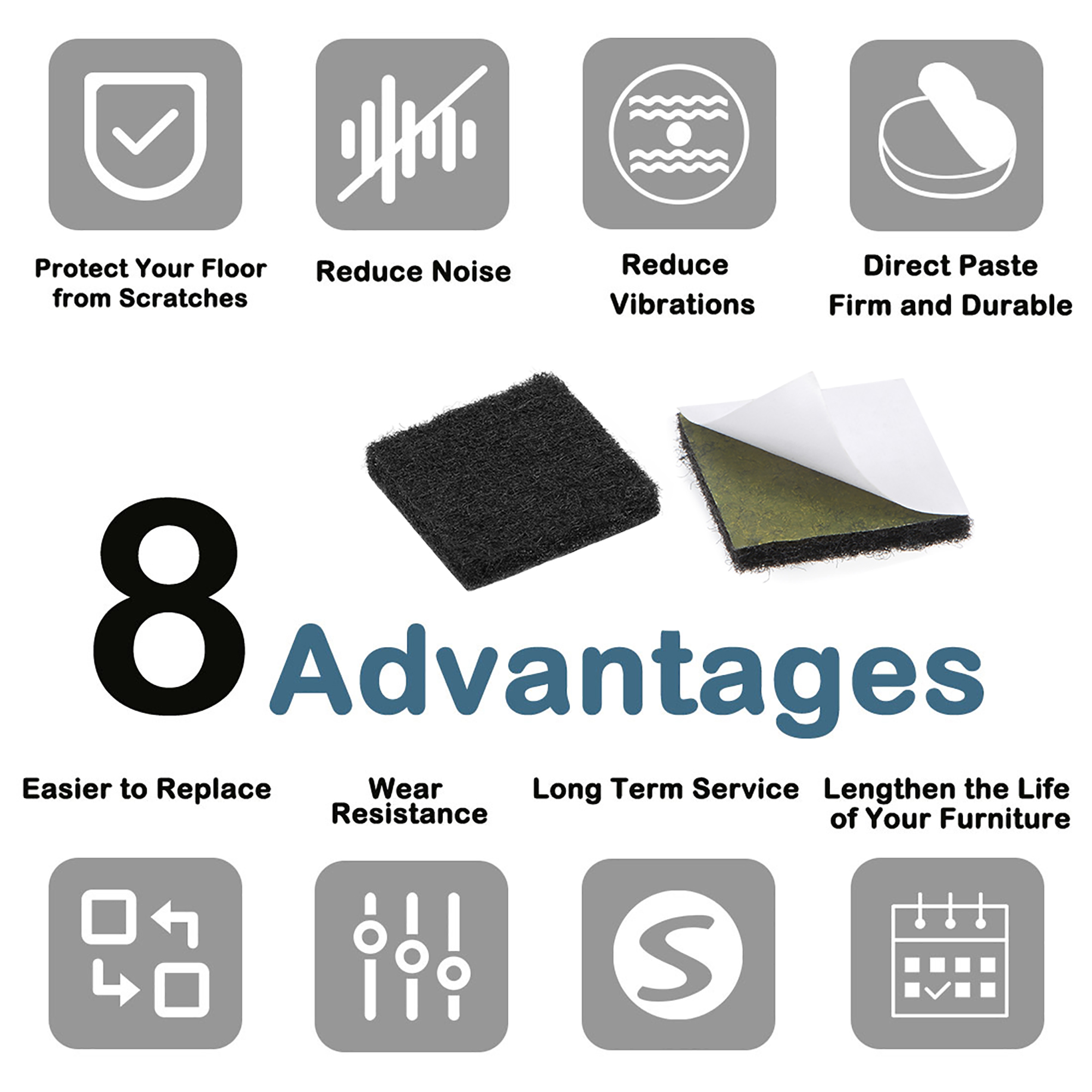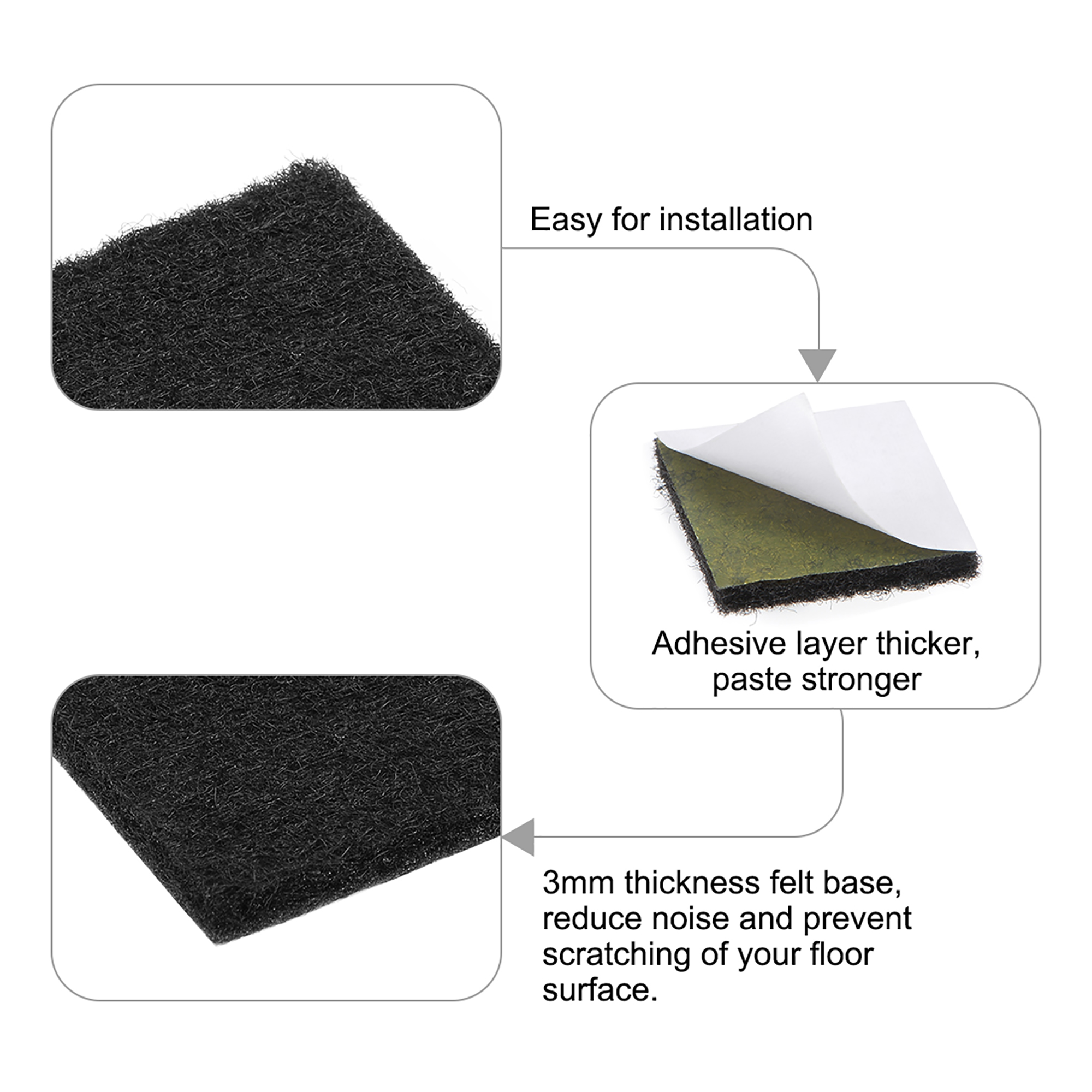- Never again hear the annoying scraping sound of a chair being pushed against a hard surface, our felt pads help reduce noise.