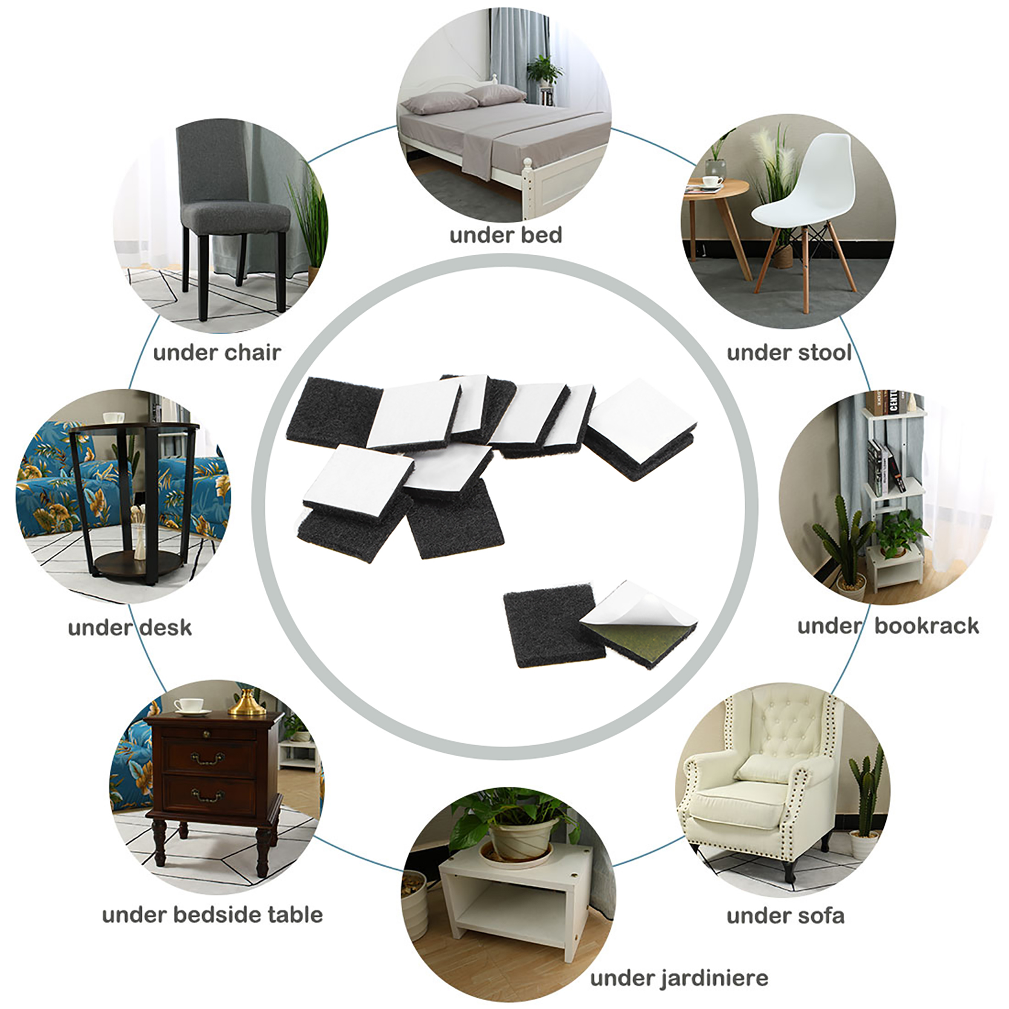 - Our felt pads have a tenacious adhesive which does not allow them to fall off from furniture legs and tightly hold the pads for a long time.