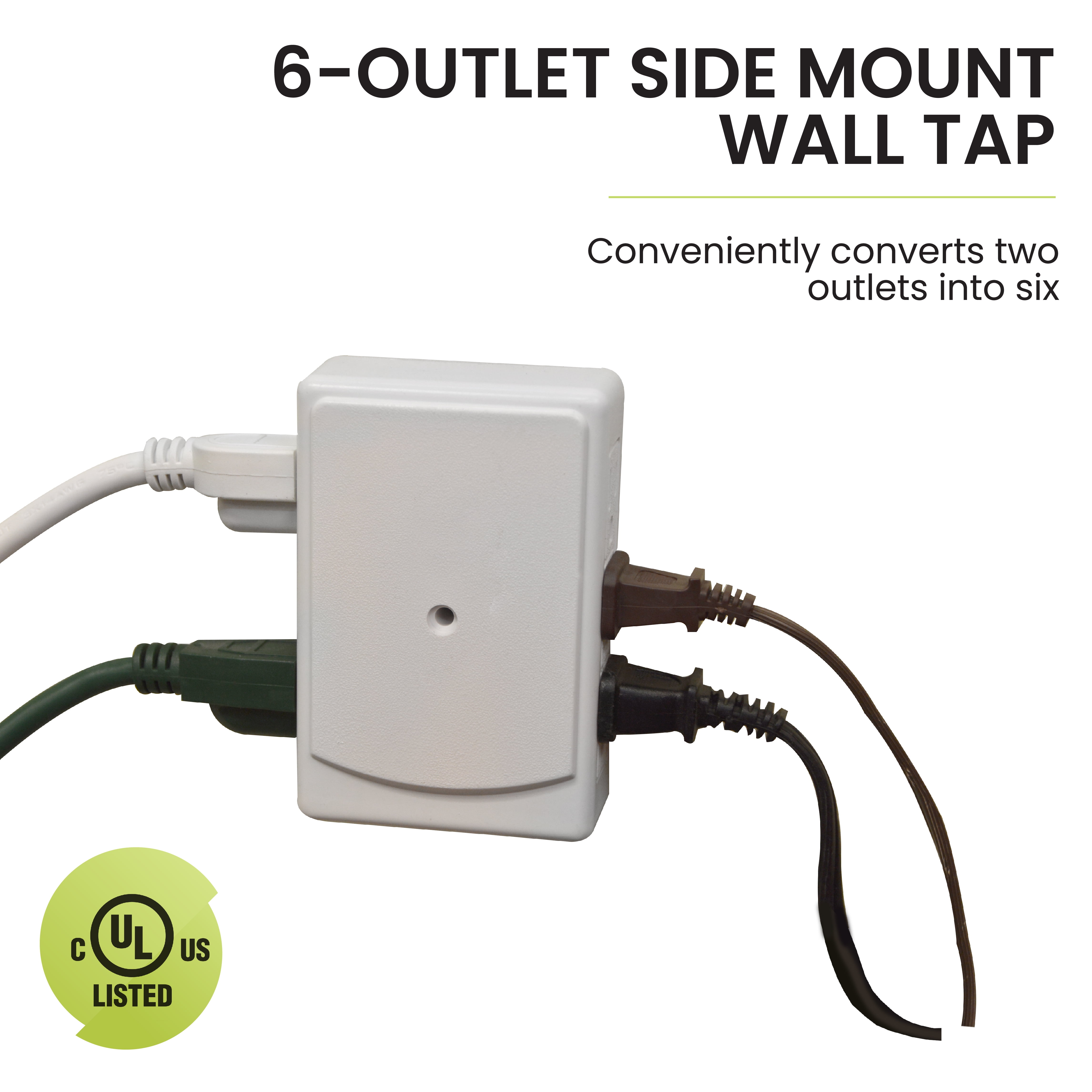 6 Outlet Wall Tap: The GoGreen Power® 6 Outlet side mount wall tap is the perfect item for those hard to reach places behind couches, tables, beds and more.