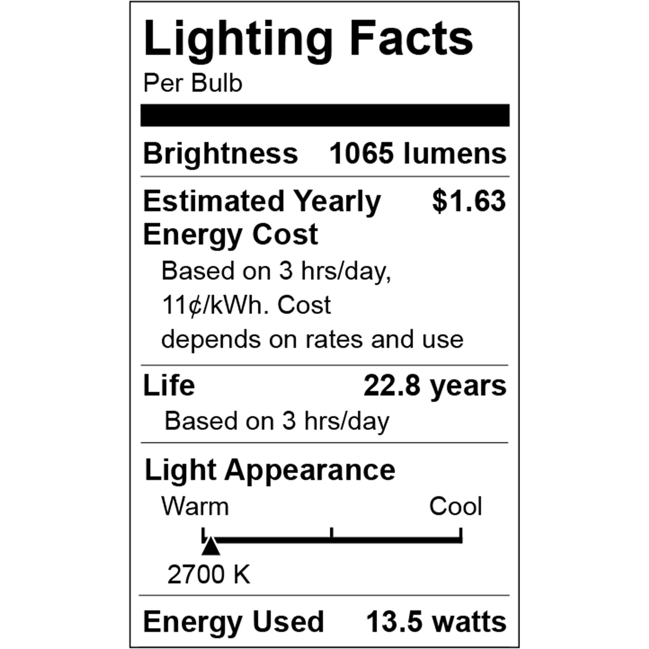 Great Value LED Light Bulb, 13.5W (85W Equivalent) BR40 Floodlight Lamp E26 Medium Base, Dimmable, Soft White, 2-Pack: