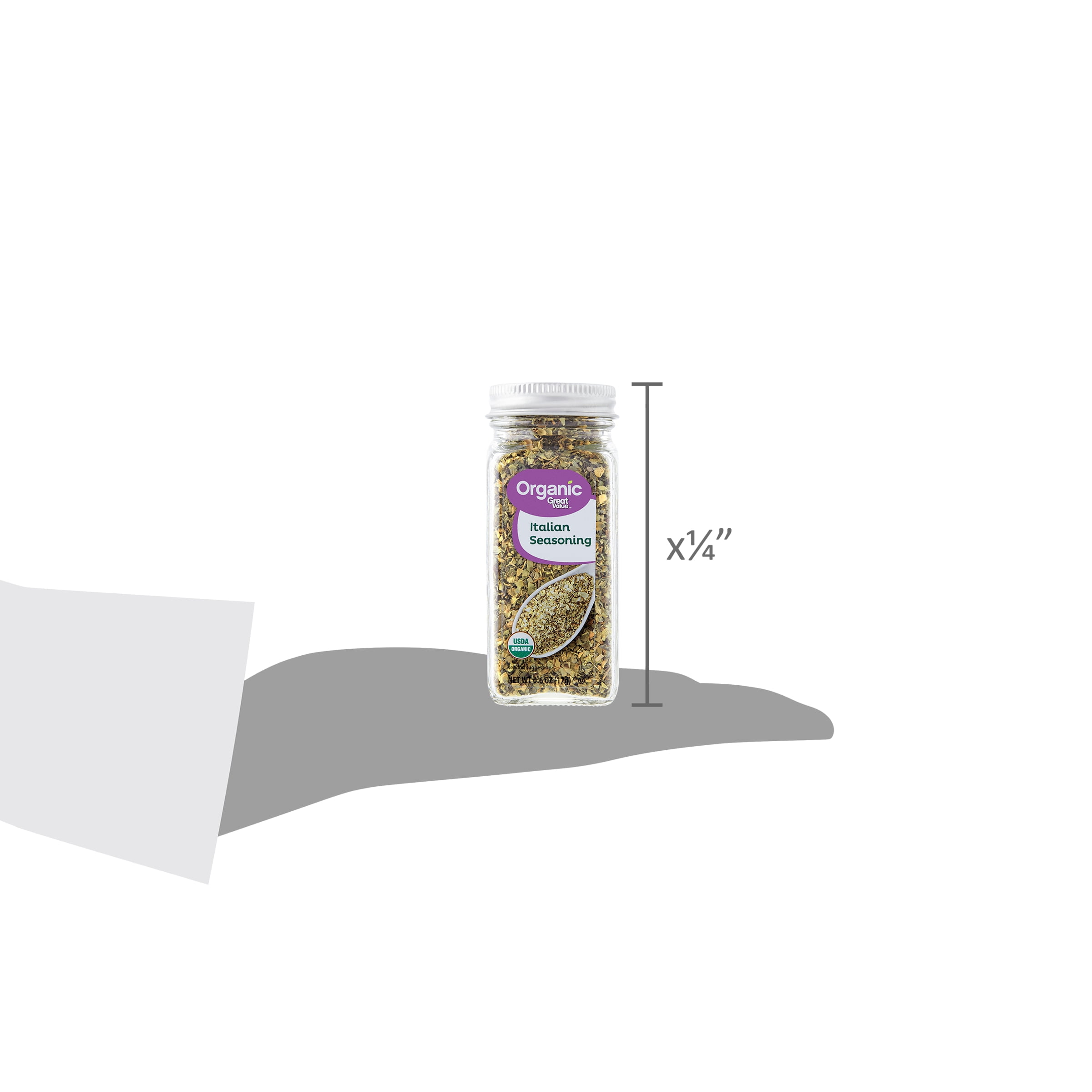Great Value Organic Italian Seasoning will instantly upgrade all your favorite family dishes. This versatile blend of dried oregano, basil, marjoram, sage, and garlic will become your go-to shortcut in the kitchen. It is the perfect addition to pasta, casseroles, and egg recipes, and adds sophisticated flavor to marinades, soups, salads, and homemade dressings. This USDA certified organic blend has no artificial flavors or preservatives to deliver great food you can trust. Try Great Value Organic Italian Seasoning to make delicious meals that will bring them back for more.