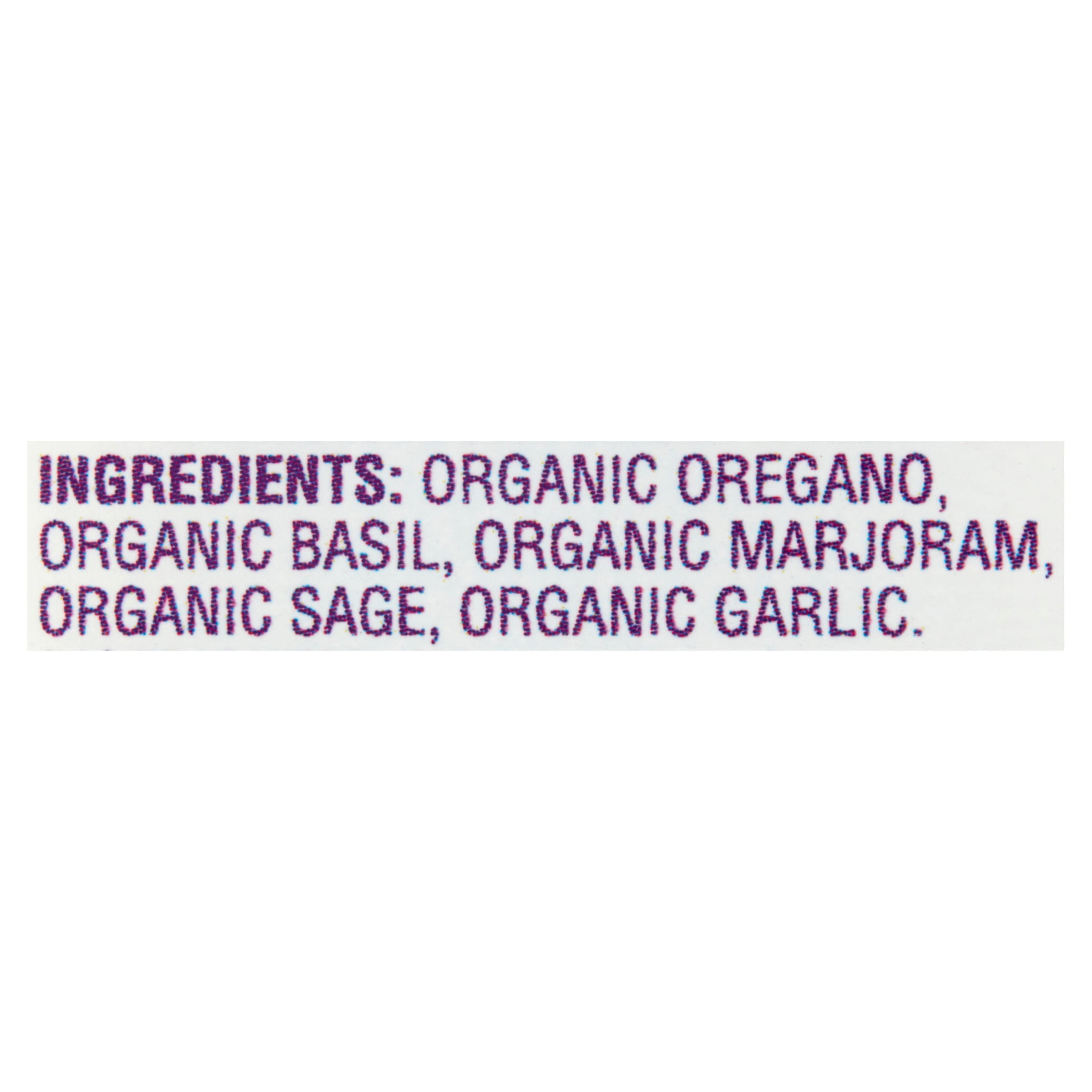 - Blend of dried oregano, basil, marjoram, sage, and garlic