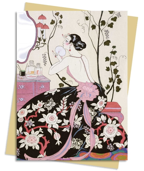 Sold in packs of 6. Gorgeous, foiled, handmade greeting cards, blank inside and shrink-wrapped with a gold envelope. Themed with our art calendars, foiled notebooks and illustrated art books. Our greeting cards are printed on FSC paper and wrapped in biodegradeable cellobag, and are themed with our art calendars, foiled notebooks and illustrated art books. This example features Barbier’s ‘Backless Dress’ design.