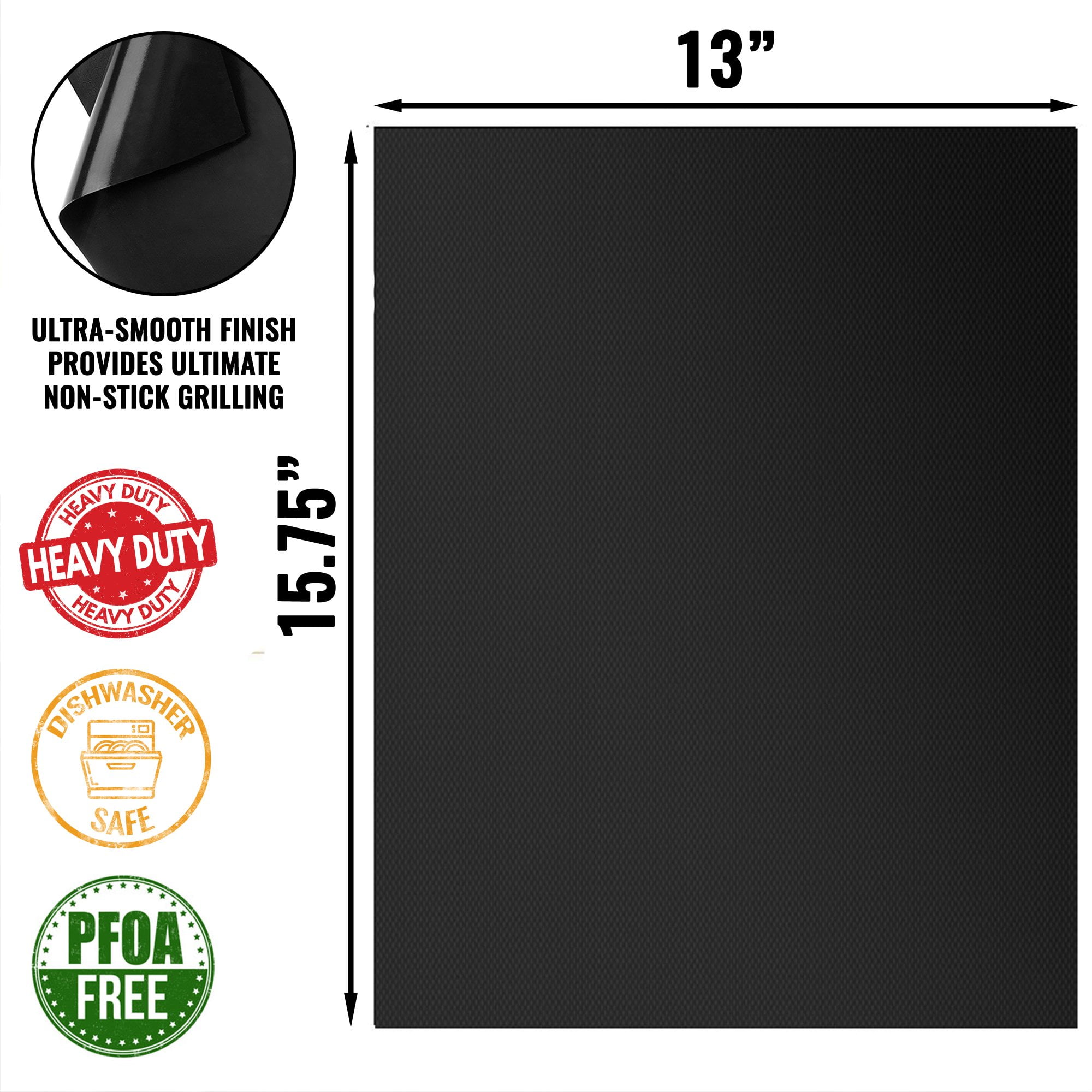 - [Grillaholics Heavy is the Premier Grill Mat] Our ultra-smooth finish provides superior nonstick grilling. Never worry about your food sticking to the grates or falling through the cracks again. Flare-ups are a thing of the past…no more burnt meals or ruined dinners.