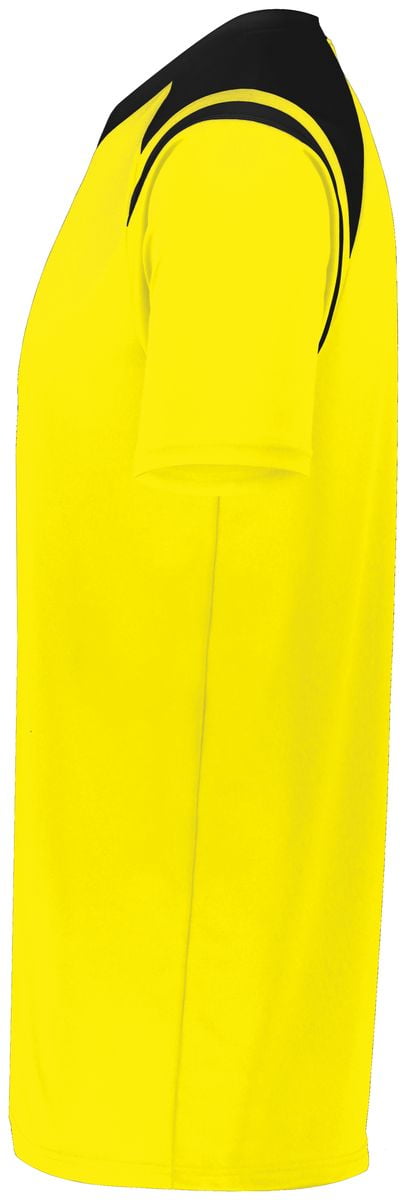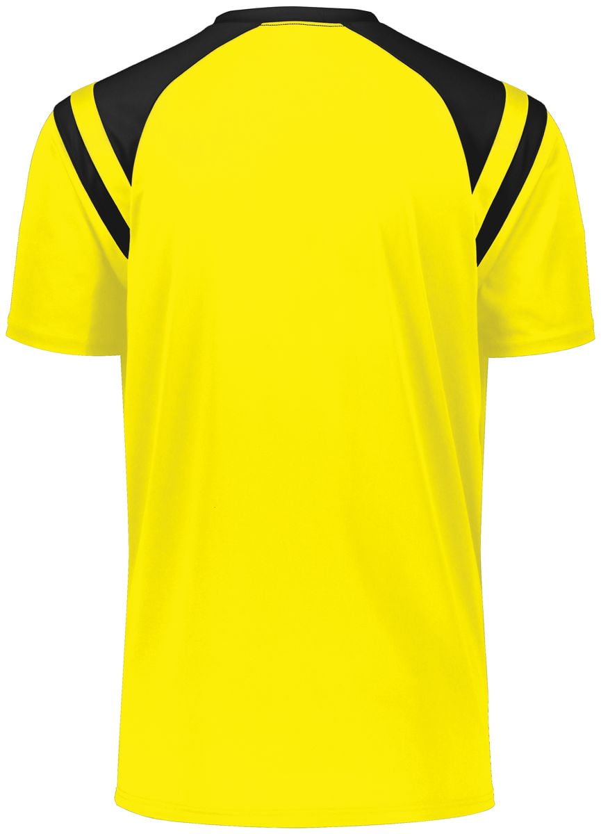 Prepare for greatness in the High Five Youth Sheffield Soccer Jersey. The contrast neck and shoulder inserts add a touch of style to this V-neck raglan sleeve kids jersey. This soccer jersey features a 100% polyester knit to keep you cool and dry as well as decoration-friendly color secure technology to help prevent dye migration from screen printing.