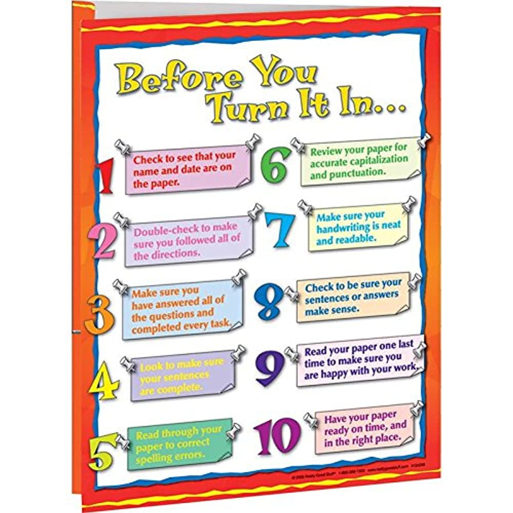 Students will never lose or misplace homework when it is in these brightly colored folders. One pocket holds homework to do while the other holds work already finished. There’s even a list on the back featuring ten reminders to check for before handing in assignments.12 folders, 9.5" by 12" each Two inside pockets, 9.5" by 4" each ,