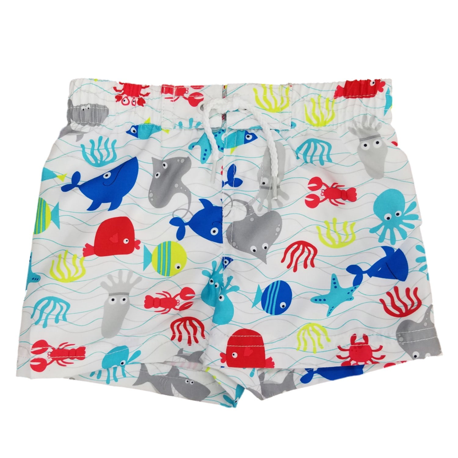 Infant Boys White Sea Life Ocean Scene Swim Trunks Board Shorts 3-6m