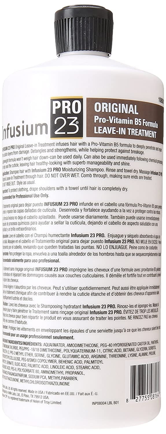Infusium 23 PRO Original Leave-In Treatment infuses hair with a Pro-Vitamin B5 formula to deeply penetrate and repair the cuticle layers from damage. Detangles and strengthens, while helping to protect against breakage. Improves the manageability of hair for better styling and increased shine and luster. Original Leave-In Treatment formula is lightweight, so it won’t weigh hair down. Can be used immediately following chemical processing to help seal the cuticle, leaving hair healthy-looking with superb manageability and shine. Detangles while adding manageability and shine. Use after a chemical service to help seal the cuticle.