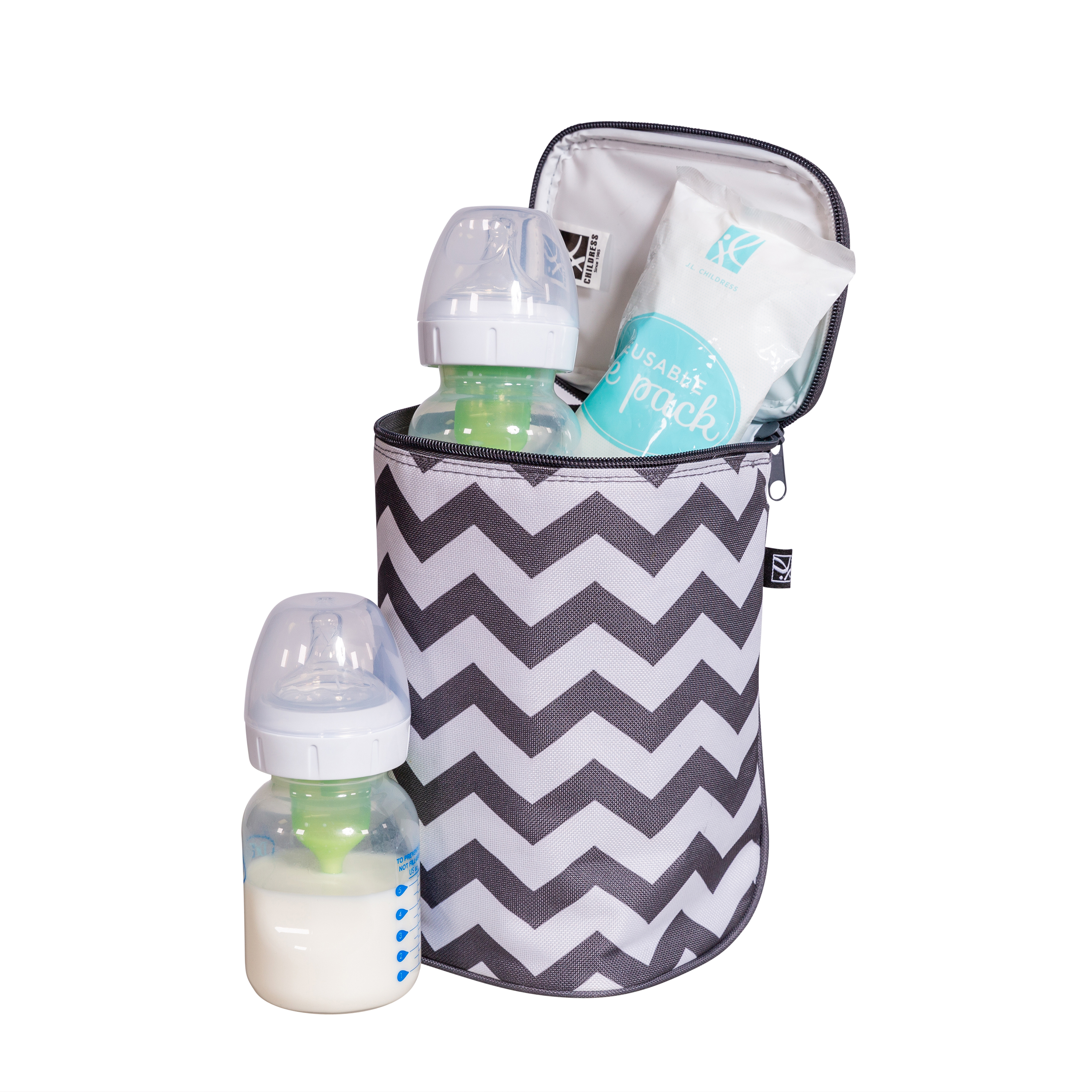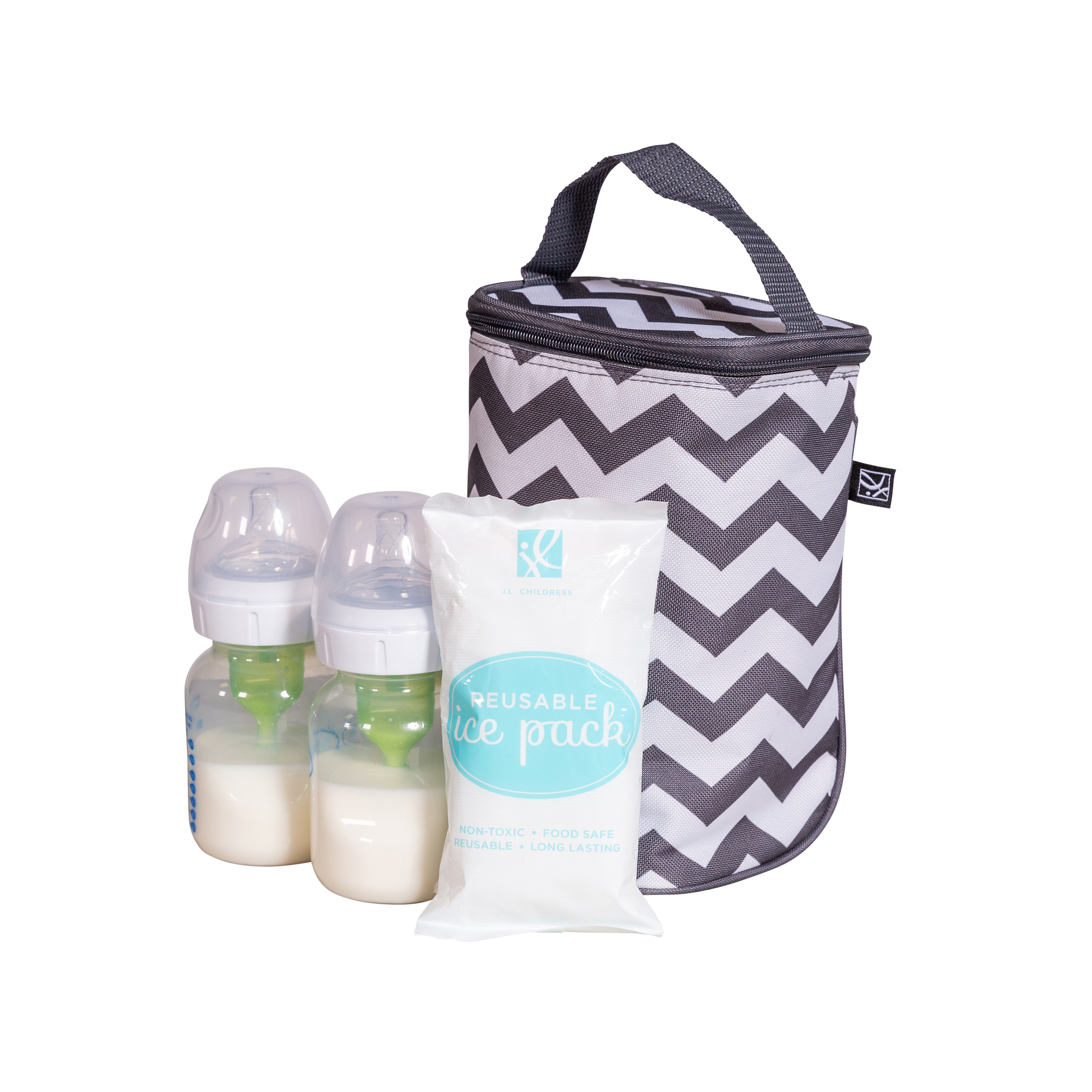J.L. Childress Tall Two COOL 2 Bottle Cooler – Breastmilk and Baby Bottle Bag with Ice Pack, Grey Chevron: