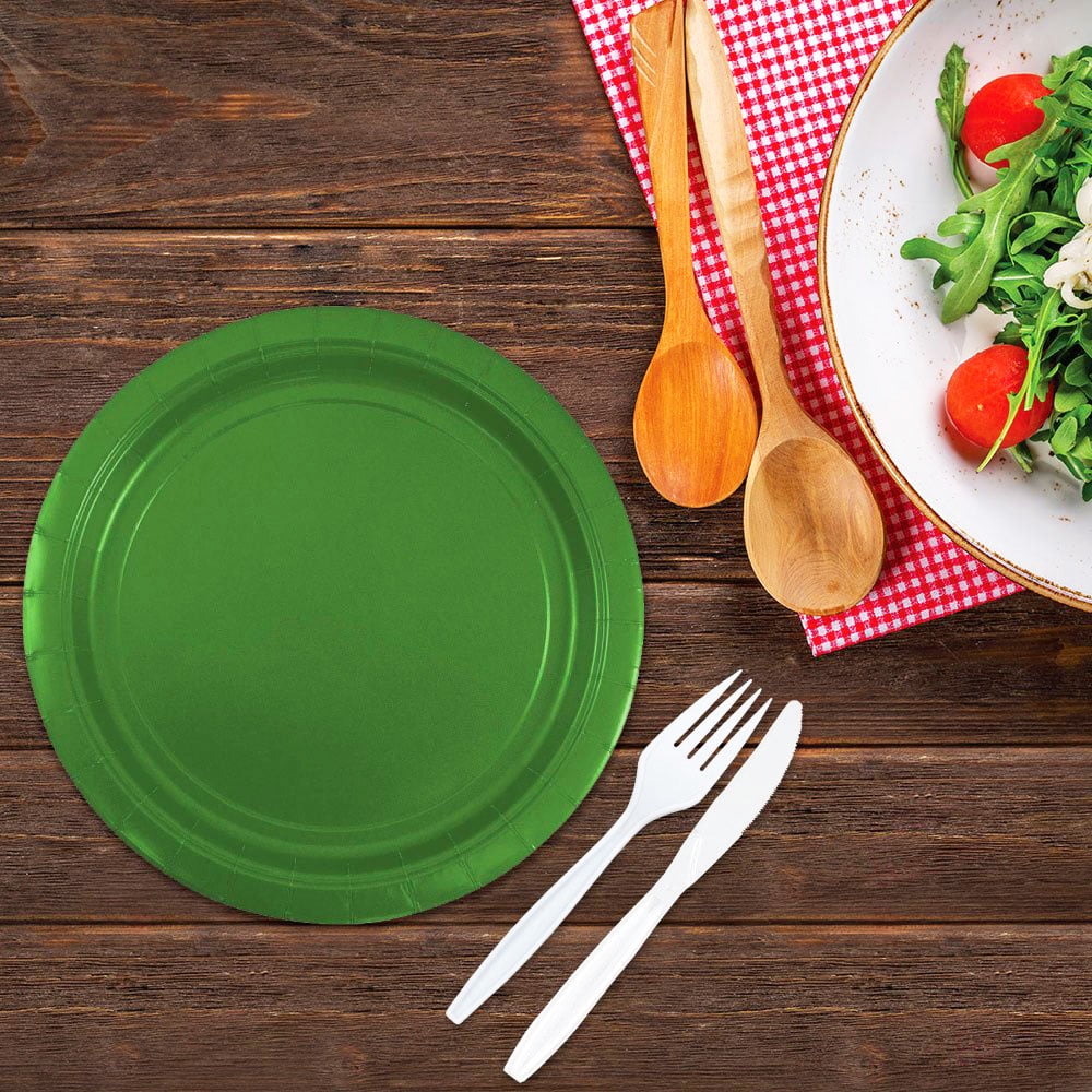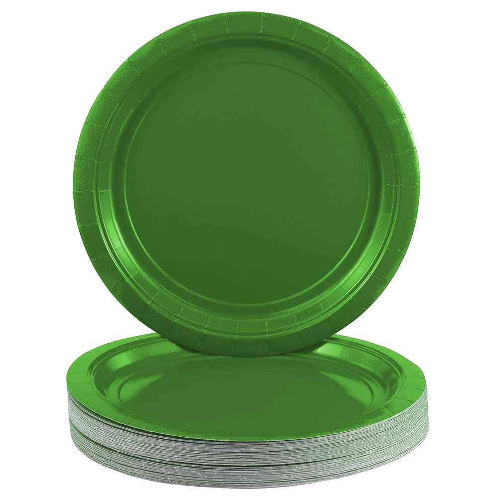 Say goodbye to double-plating with JAM Paper® Medium Round Paper Party Plates. These Green paper plates made from durable, strong cardstock safely hold appetizers, entrees, desserts, and more without having to worry about leaks, damage, or grabbing another plate. Whether you use for a birthday, fundraising event, summer BBQ’s, or holidays, these plates come in handy and cut clean up time in half, leaving you with more time to spend with friends and family! This pack contains 50 medium sized green recyclable paper plates measuring 9" in diameter. Size: 9in | Color: Green | Quantity: 50/pack