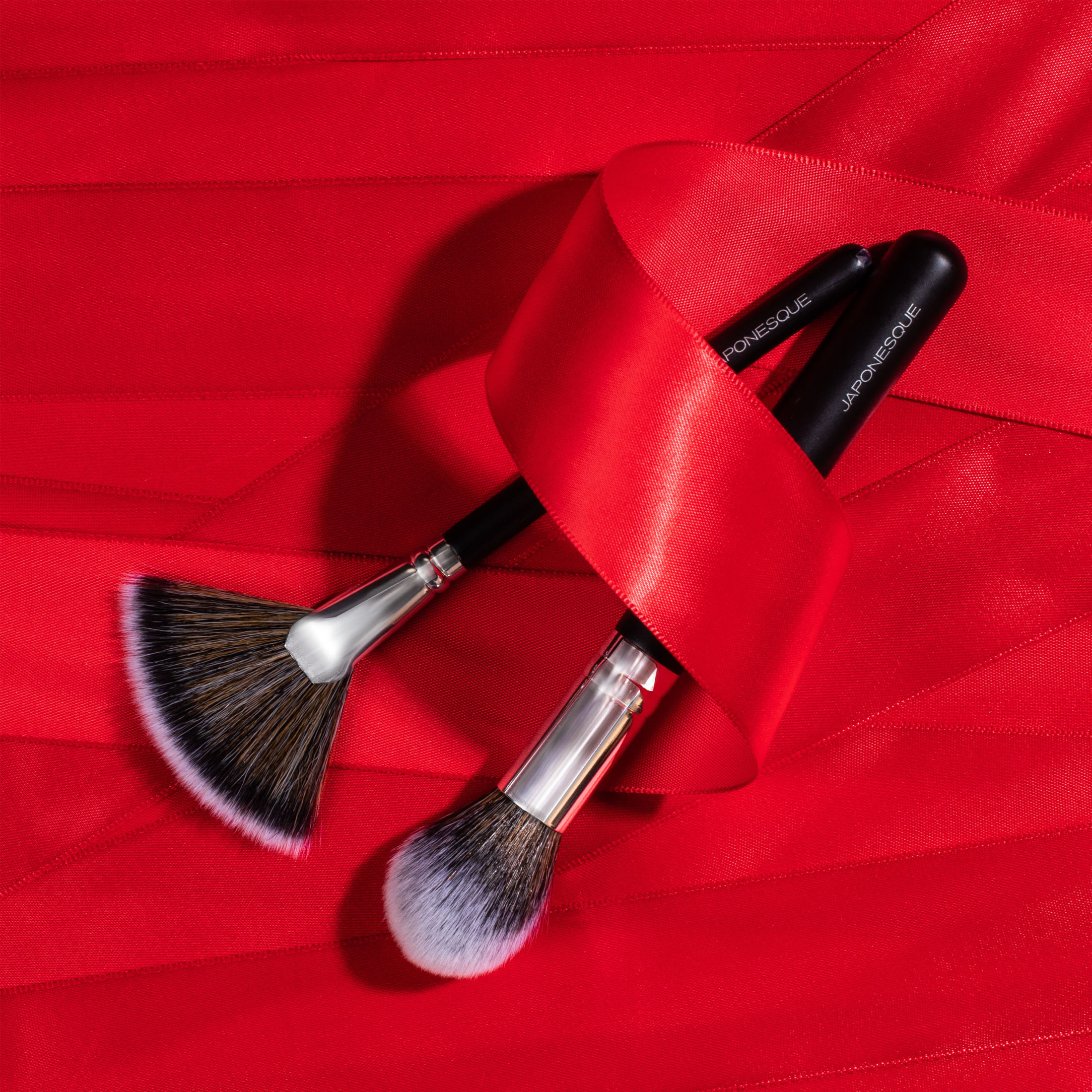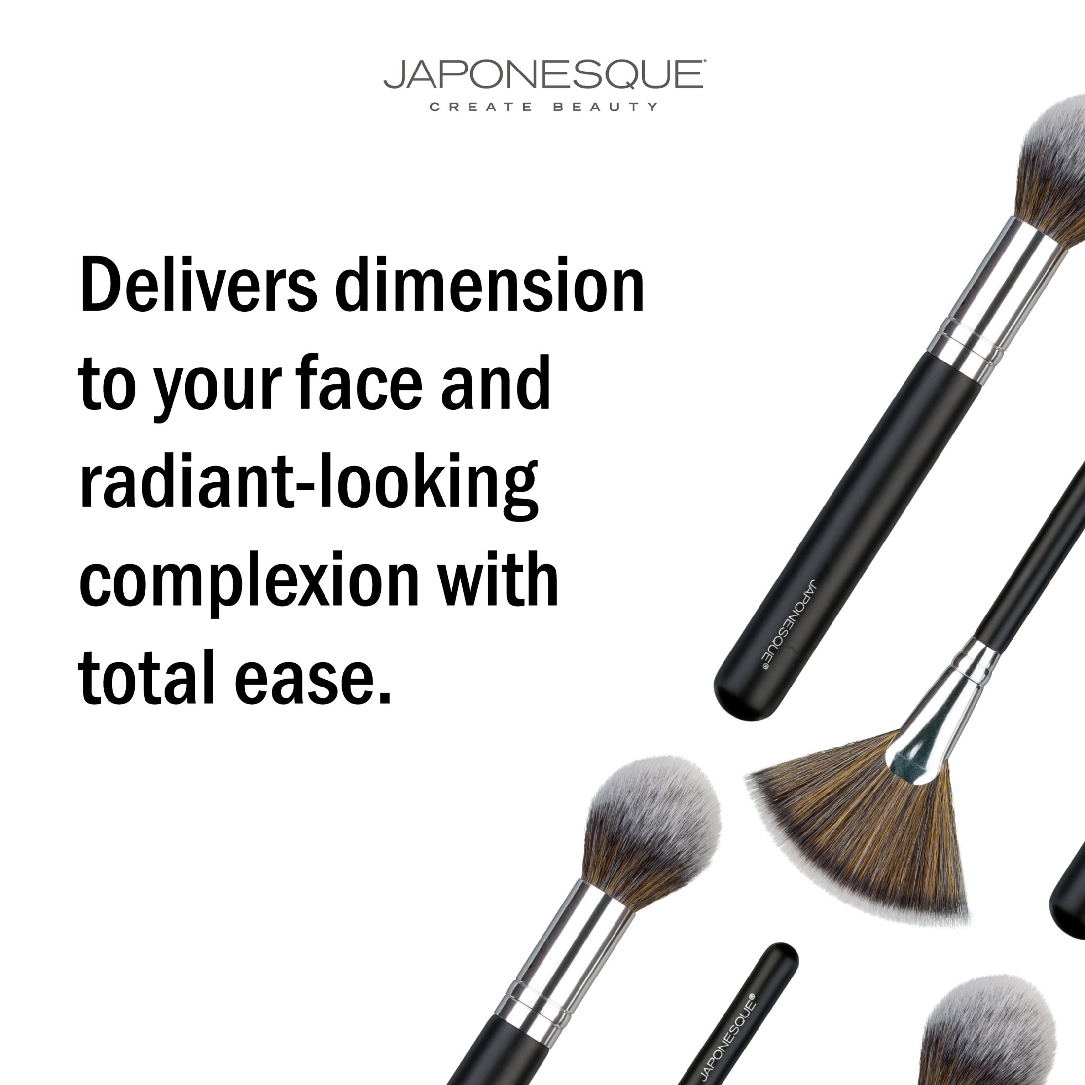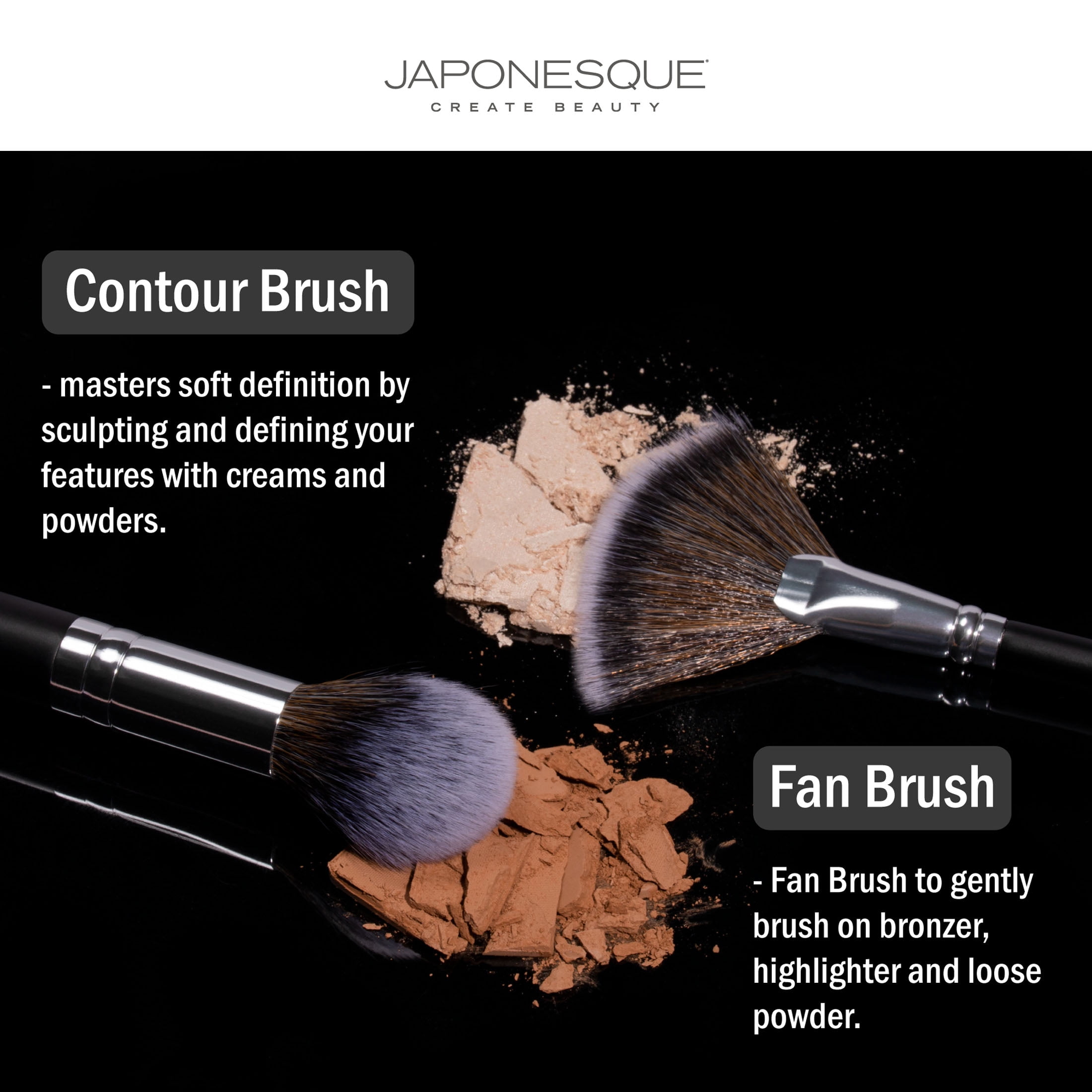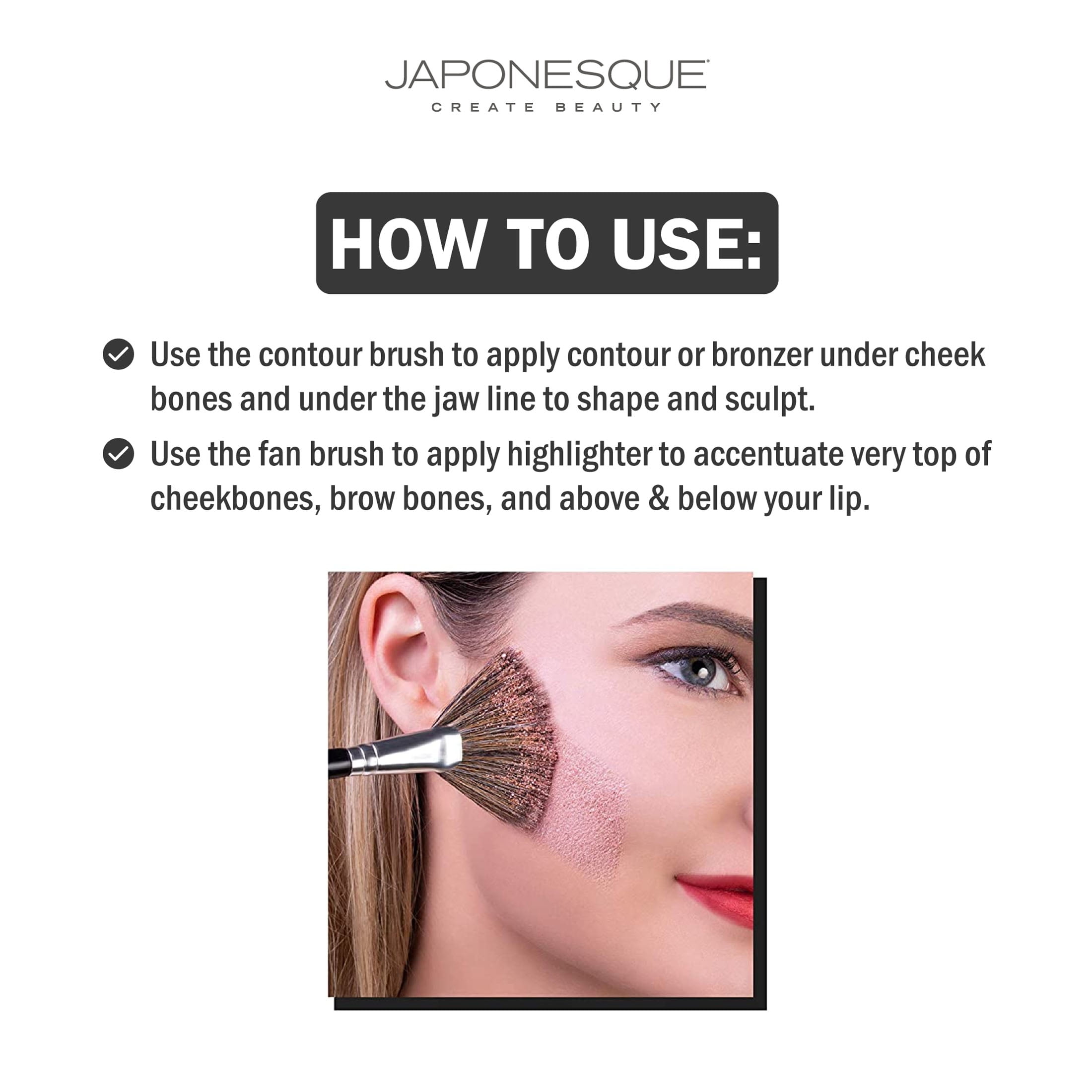 The JAPONESQUE® Must-Have Highlighting Duo features durable yet ultra-soft brushes that expertly diffuse powder highlighter and precisely apply liquid, cream, and powder contour for sculpted glowing perfection. Includes two professional quality brushes uniquely crafted for a specific application.Includes two expertly crafted complexion brushes: