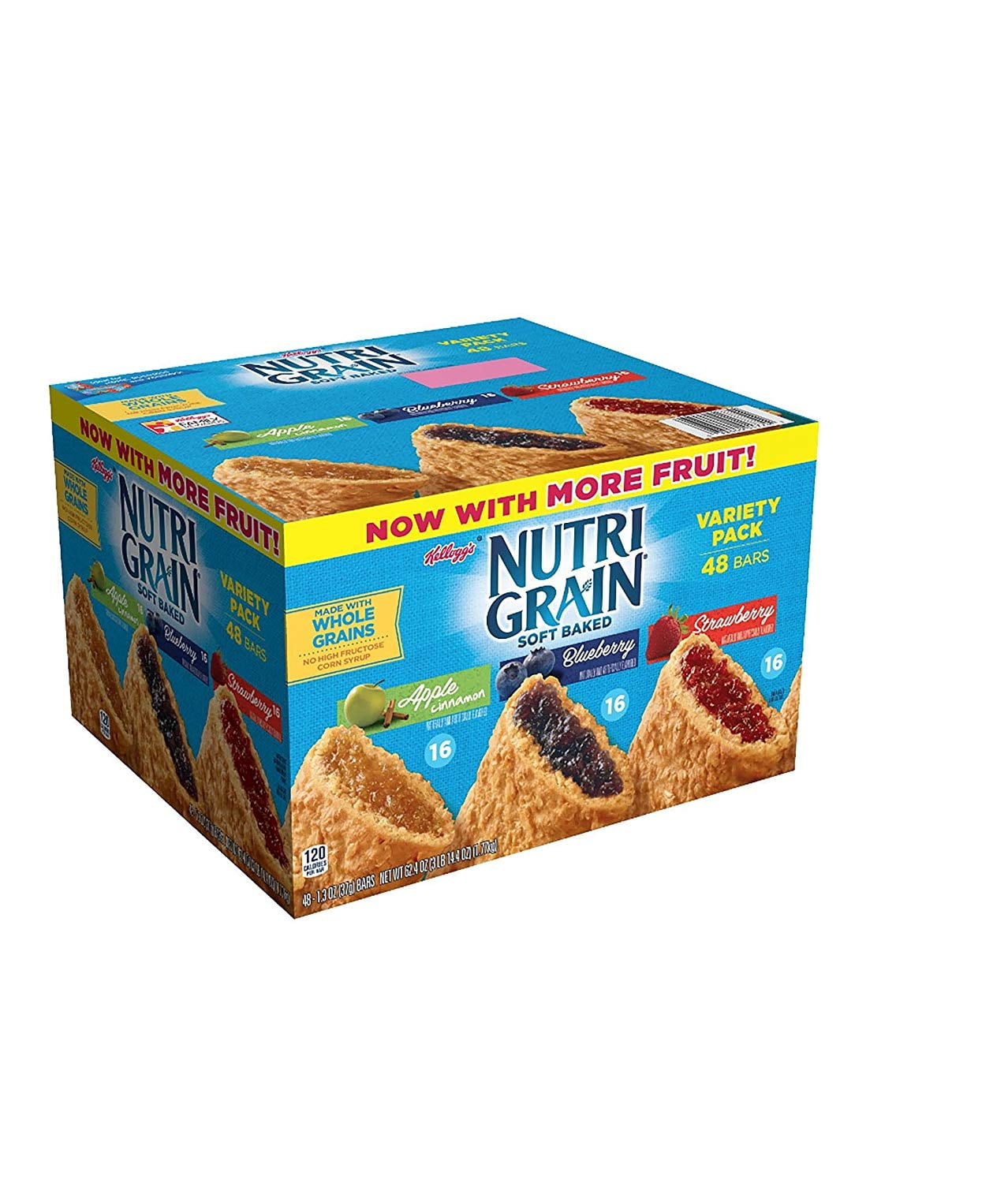 Kellogg’s Nutri-Grain Variety Pack (1.3 oz., bar, 48 ct.) vevo – Basic Variety pack includes: -Apple Cinnamon (12) -Blueberry (12) -Strawberry (12) About this item: -Nutri Grain bars made with whole grain and real fruit -Good source of fiber -Great for on-the-go snacking -Conveniently packaged and economical -Wholesome and deliciousKellogg’s Nutri-Grain Variety Pack (1.3 oz., bar, 48 ct.) vevo – Basic