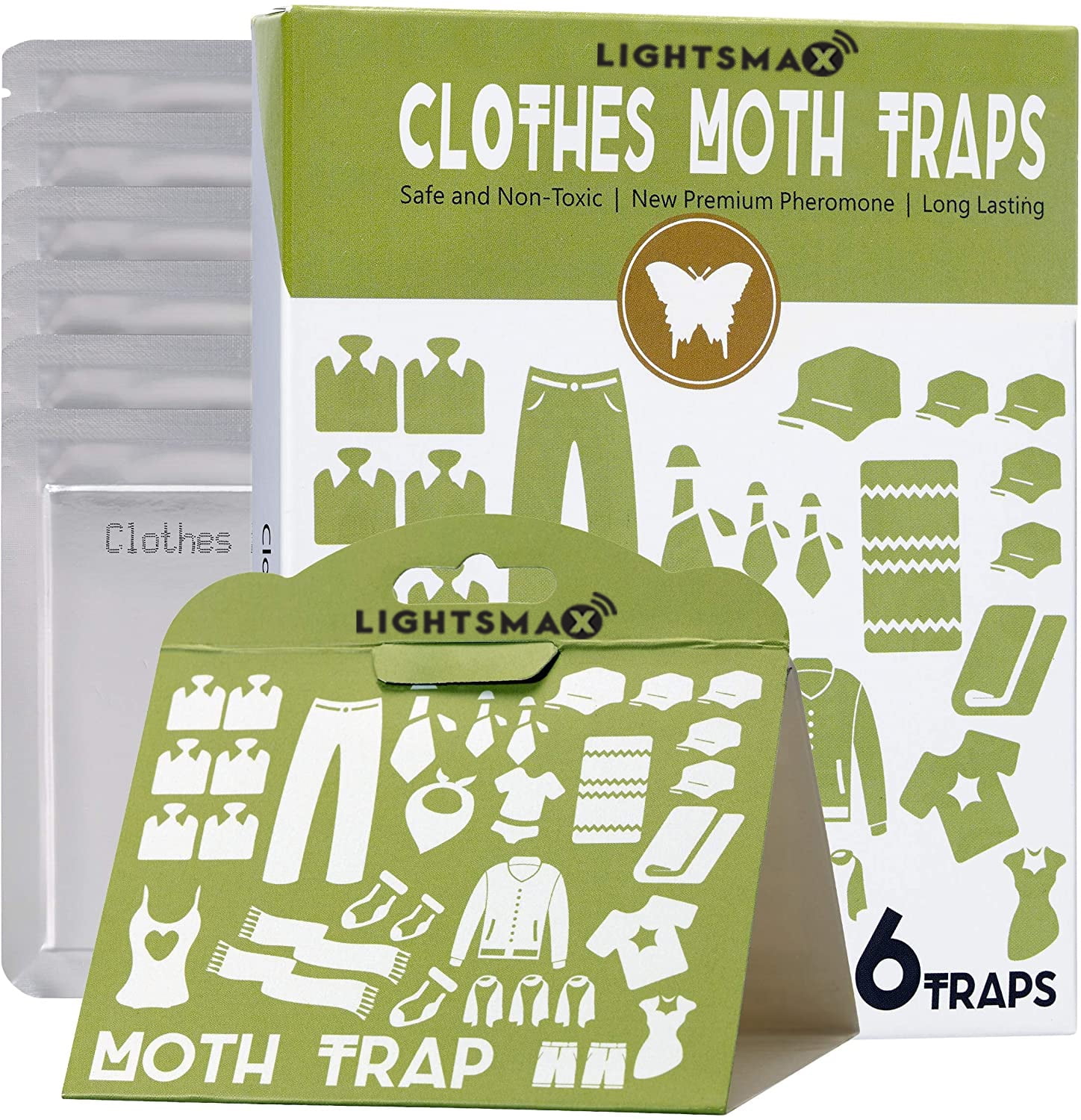LIGHTSMAX Clothes Moth Traps 6-Pack with Premium Pheromone Attractant | Most Effective Trap Available | Non-Toxic Safe No Insecticides