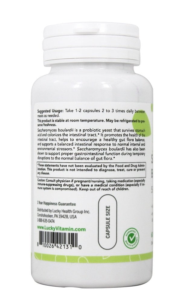 LuckyVitamin – Saccharomyces Boulardii Probiotic 5 Billion CFU – 60 Veg Capsules Saccharomyces boulardii is a probiotic yeast that survives stomach acid and colonizes the intestinal tract. It promotes the health of the intestinal tract, helps to encourage a healthy gut flora balance, and supports a balanced intestinal response to normal internal and environmental stressors.LuckyVitamin – Saccharomyces Boulardii Probiotic 5 Billion CFU – 60 Veg Capsules