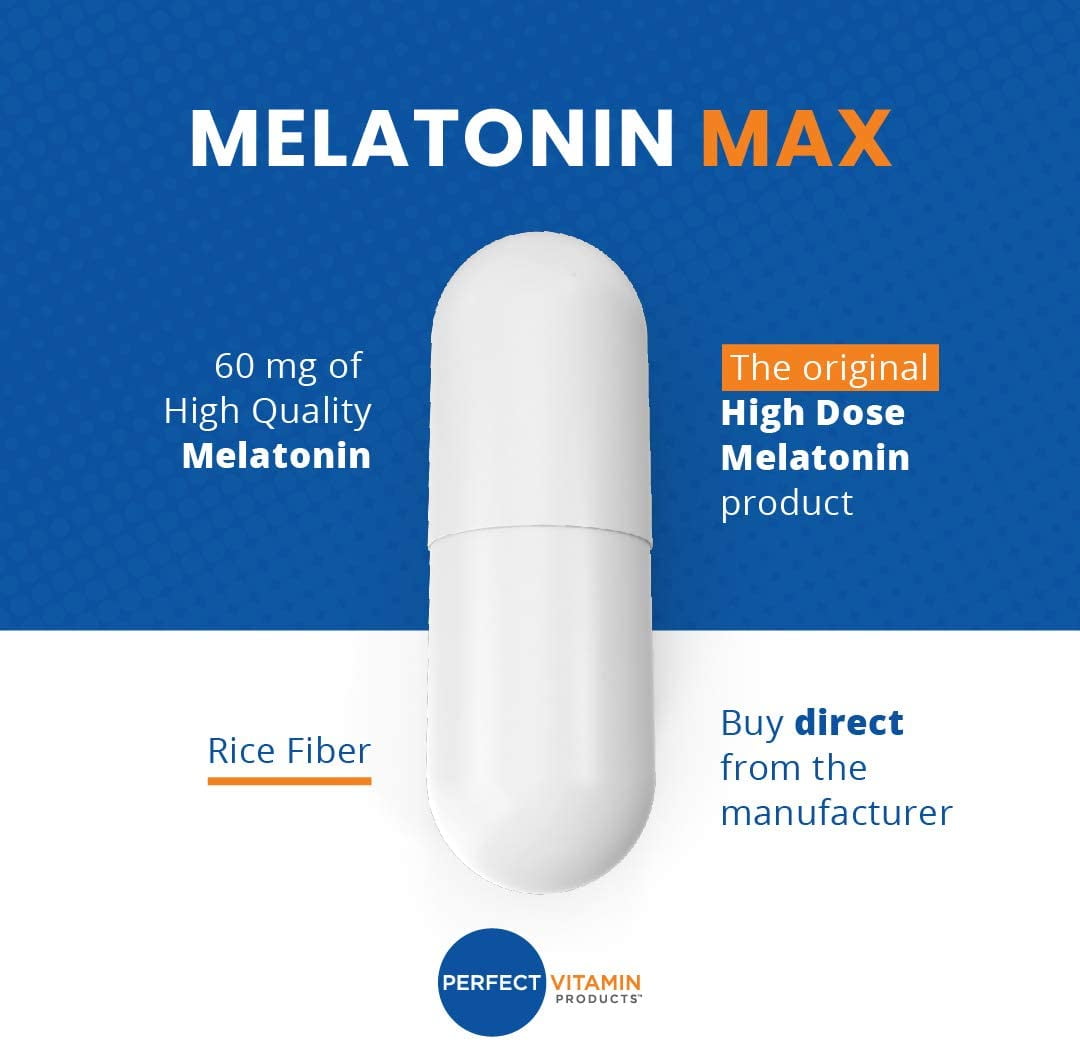- Melatonin Max provides melatonin 60mg in a easy-to-swallow capsules. Each bottle contains a two-month supply.