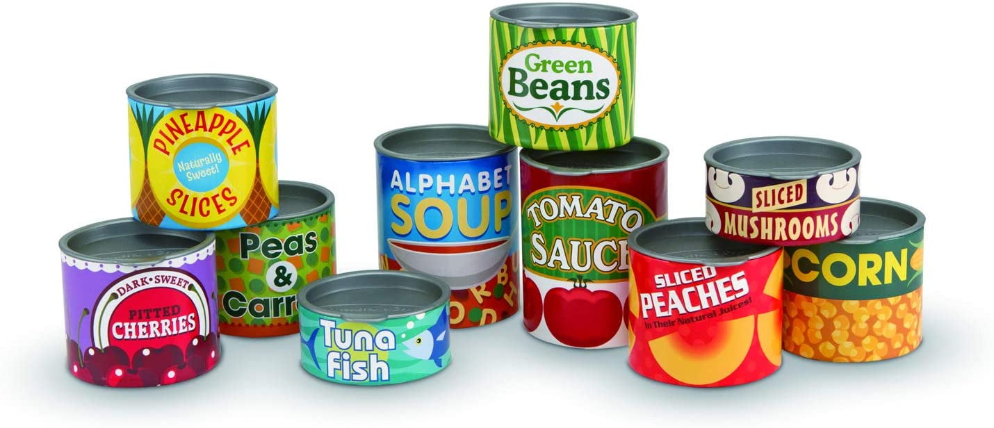 Melissa & Doug Let’s Play House! Grocery CansStock a pretend pantry with this collection of lidded cardboard play-food cans and you’ll have all the ingredients for colorful, imaginative grocery-store play. Open and close, fill and stack, sort and match the canned food toys–this set has a pretend-play flavor for every taste!