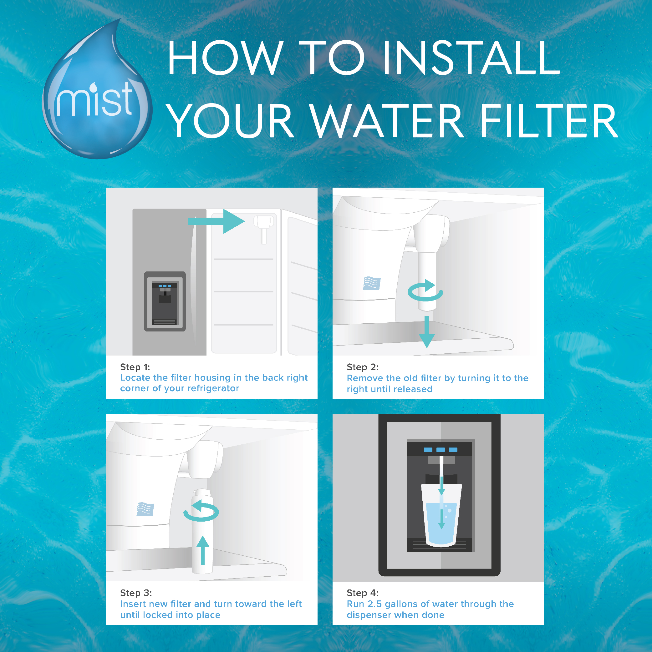 - Lasts up to six months or 200 gallons.
