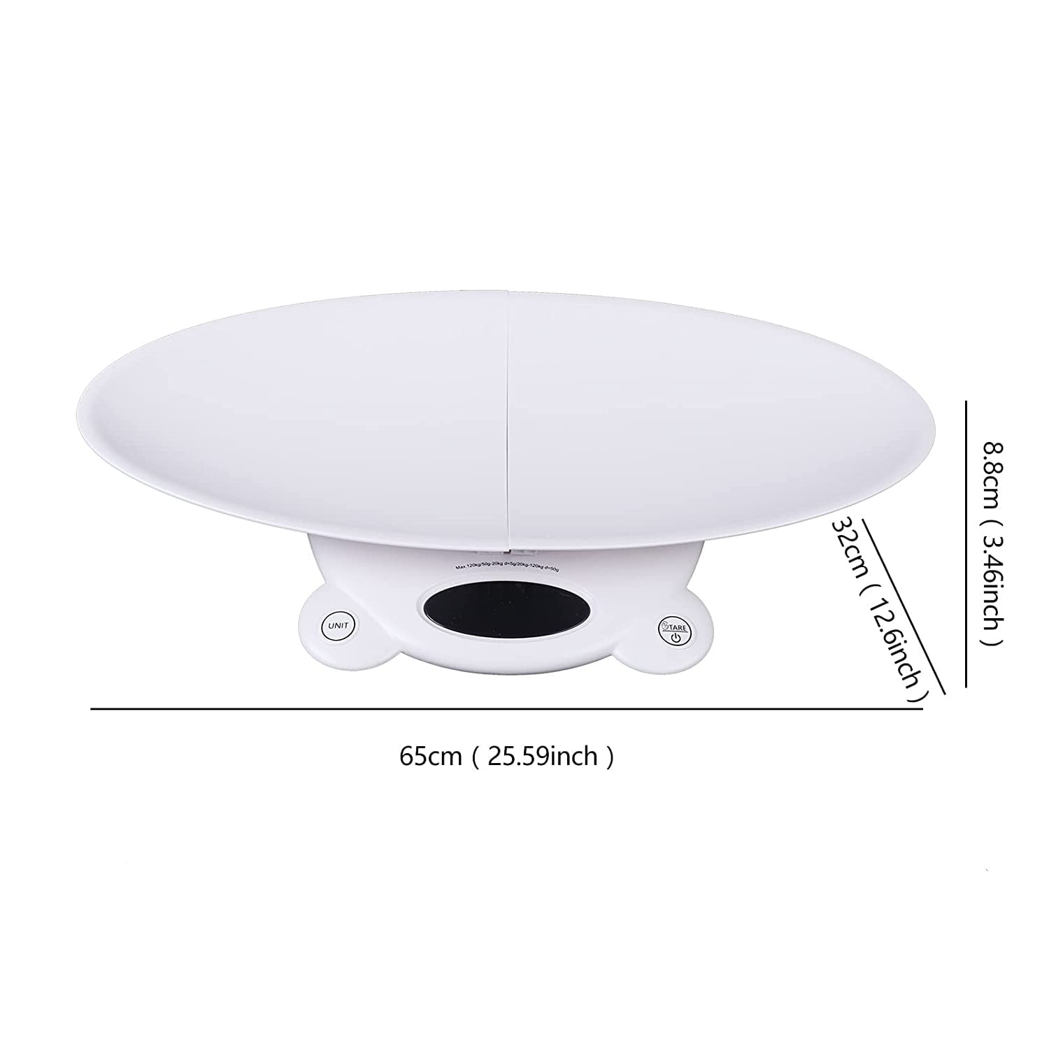 【Ergonomic Design】The tray is recessed, like a mothers gentle hands supporting the baby to weigh, the scale body is quickly decomposed design, simple to mention, one push, the scale body and the tray are easily separated.