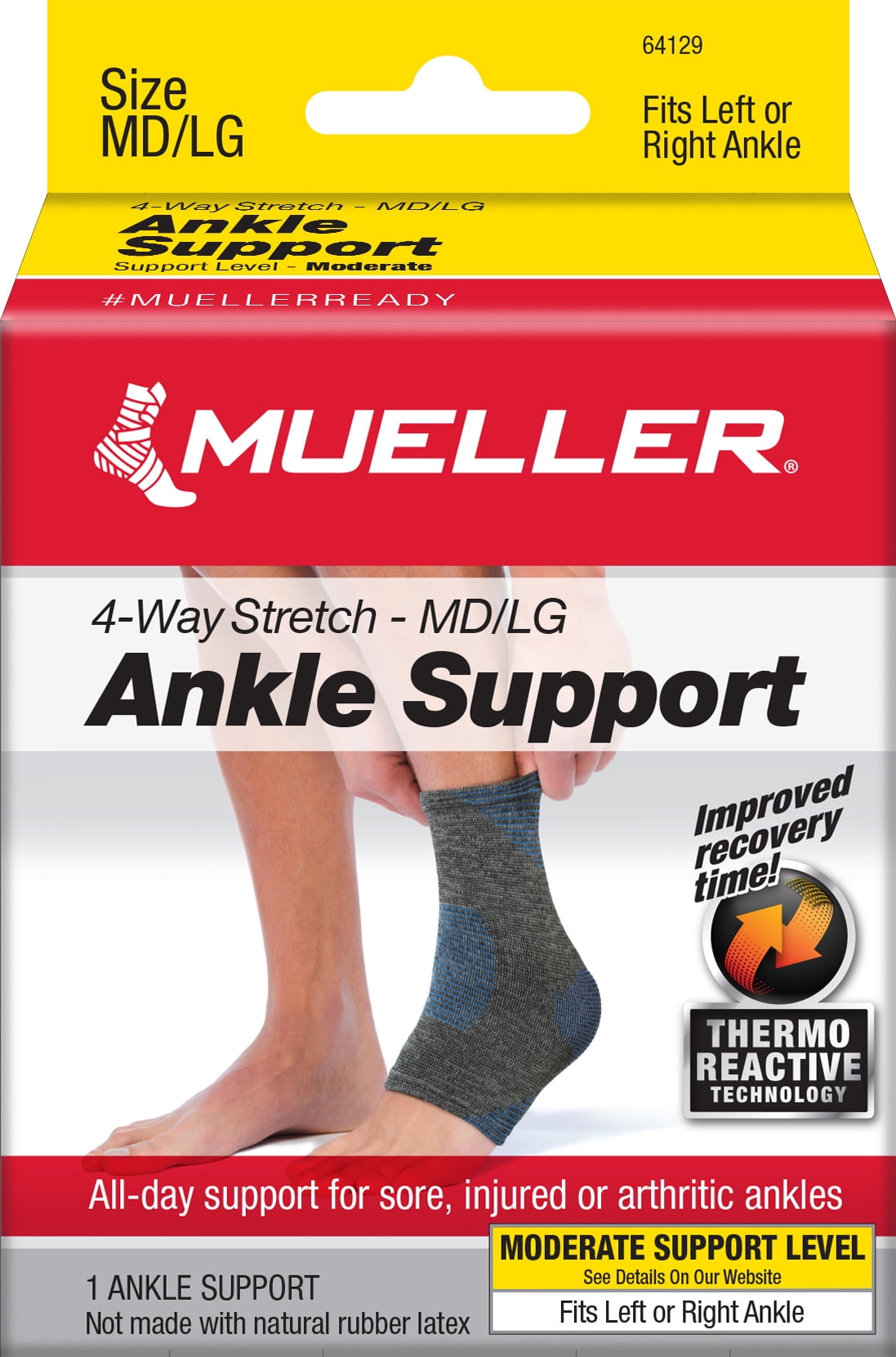 Mueller 4-Way Stretch Ankle Support provides all-day support for sore, injured or arthritic ankles.Mueller 4-way Stretch Premium Knit Ankle Support, Medium/Large