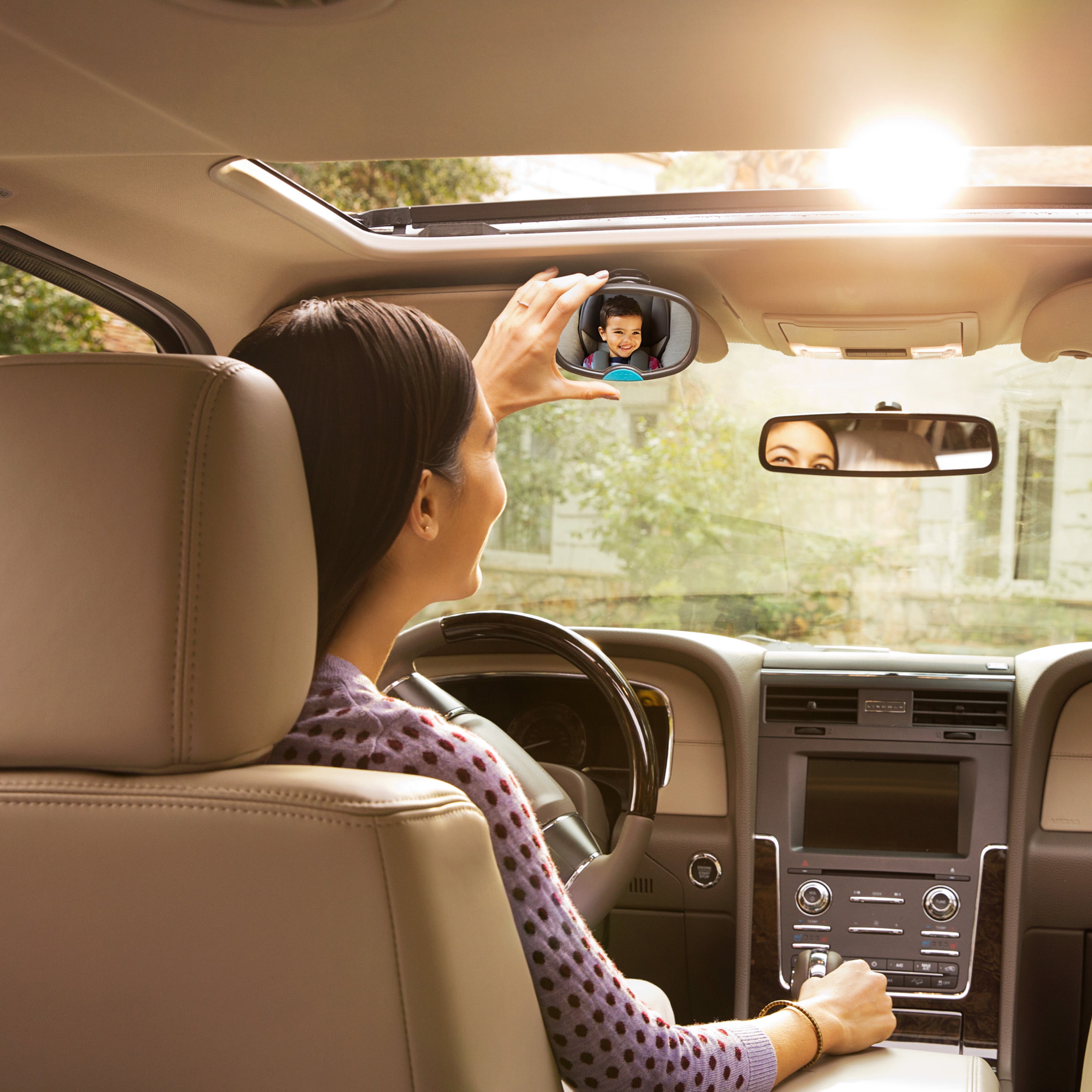 Connect with your little one as you drive with the BRICA DualSight™ Mirror. With a super clear, reflective surface and at fifty-five percent larger than our previous model, a quick glance in the mirror gives you a full, high-quality view of what’s happening in the back seat. With flexible attachment options that work with both front-facing and rear-facing car seats to keep it securely in place, this extra-large mirror gives you peace of mind (along with so many smiles, giggles and funny faces) as you go.