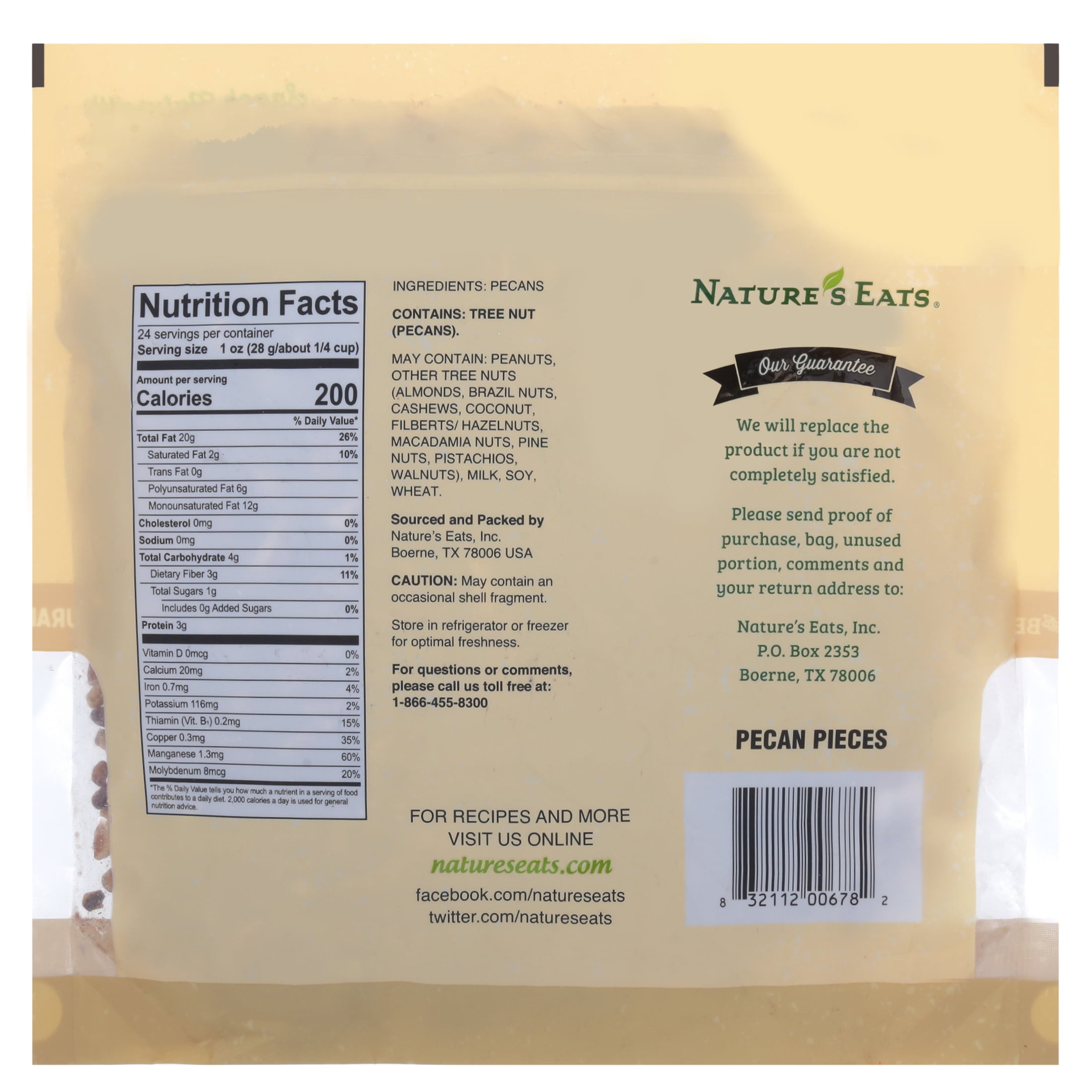 Pure, natural goodness. Nature’s Eats Pecan Pieces are great as a natural snack and also complementary in other foods such as salads, desserts and all facets of baking.