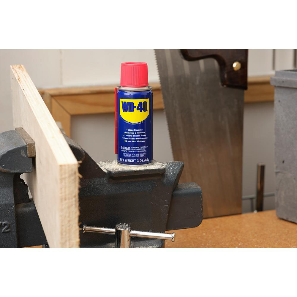 - Handy convenient size perfect for on-the-go, fits in tool belt, tool box, backpack, or kitchen drawer. Be ready for anything, this multi-purpose lubricant is truly a toolkit in a can, harness the power of WD-40 as you get every job done with ease, this formula has been around for over 68-years and has proven effective for over 2,000 different uses