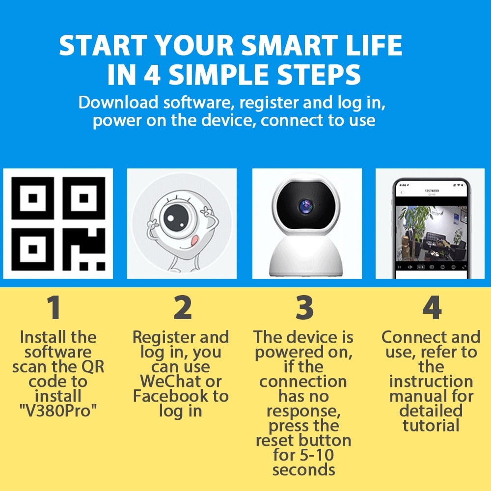 The 1080p camera provides you with clear and crisp recordings that you can watch remotely in real-time through the mobile app V308 pro.