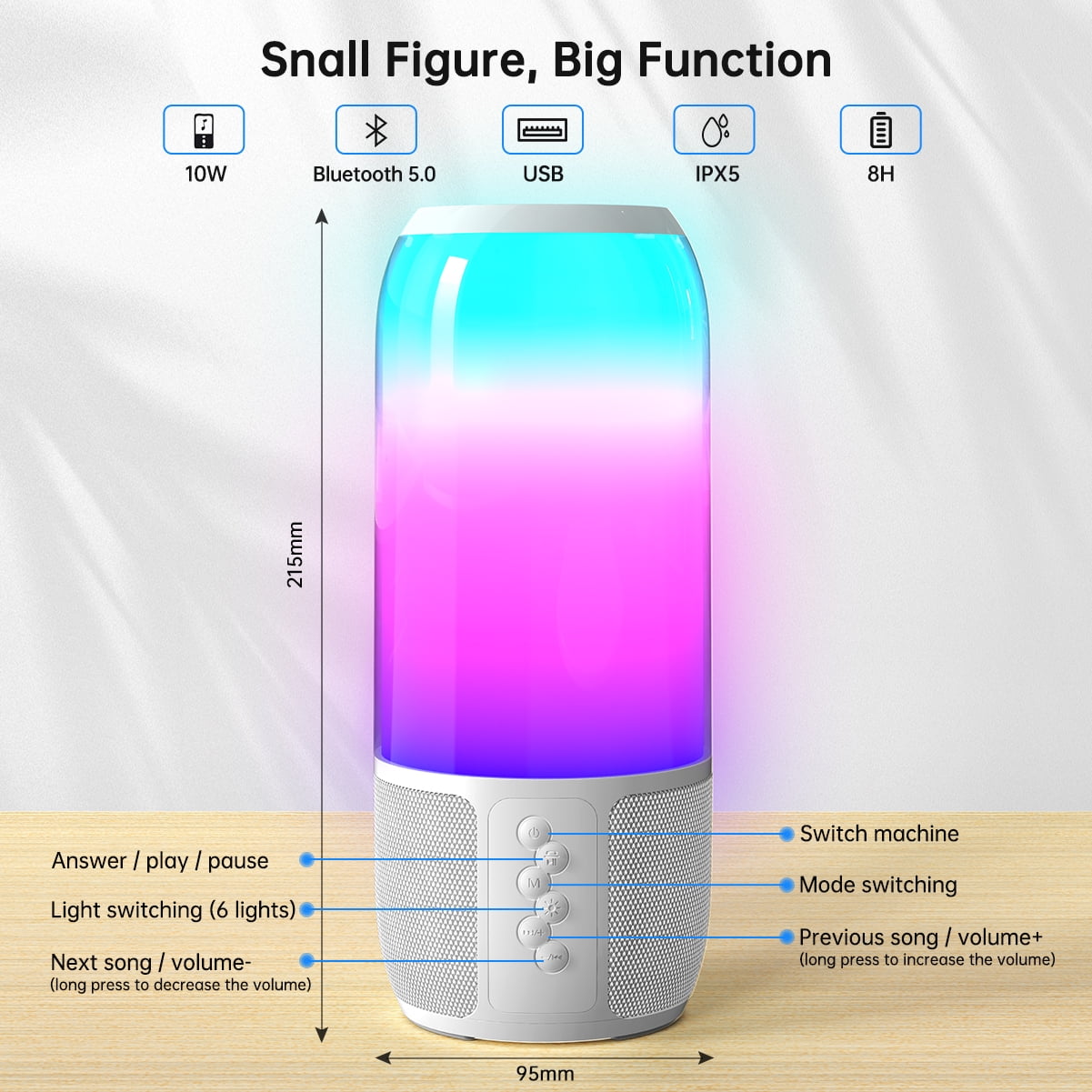【Colorful Party Lights】 Cshidworld K50 Bluetooth Speaker can switch different light shows according to the category of the song, to ensure a relaxed atmosphere at home or party, and enjoy the dual impact of vision and hearing.