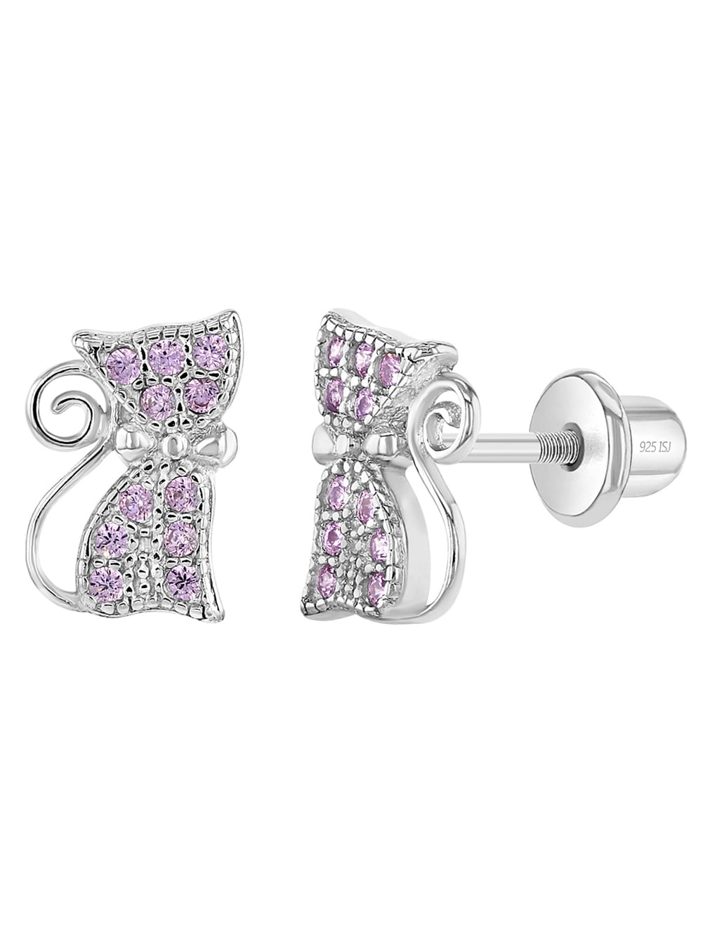 Sassy Kitty Cat Kids / Children’s / Girls Earrings Screw Back – Sterling Silver
