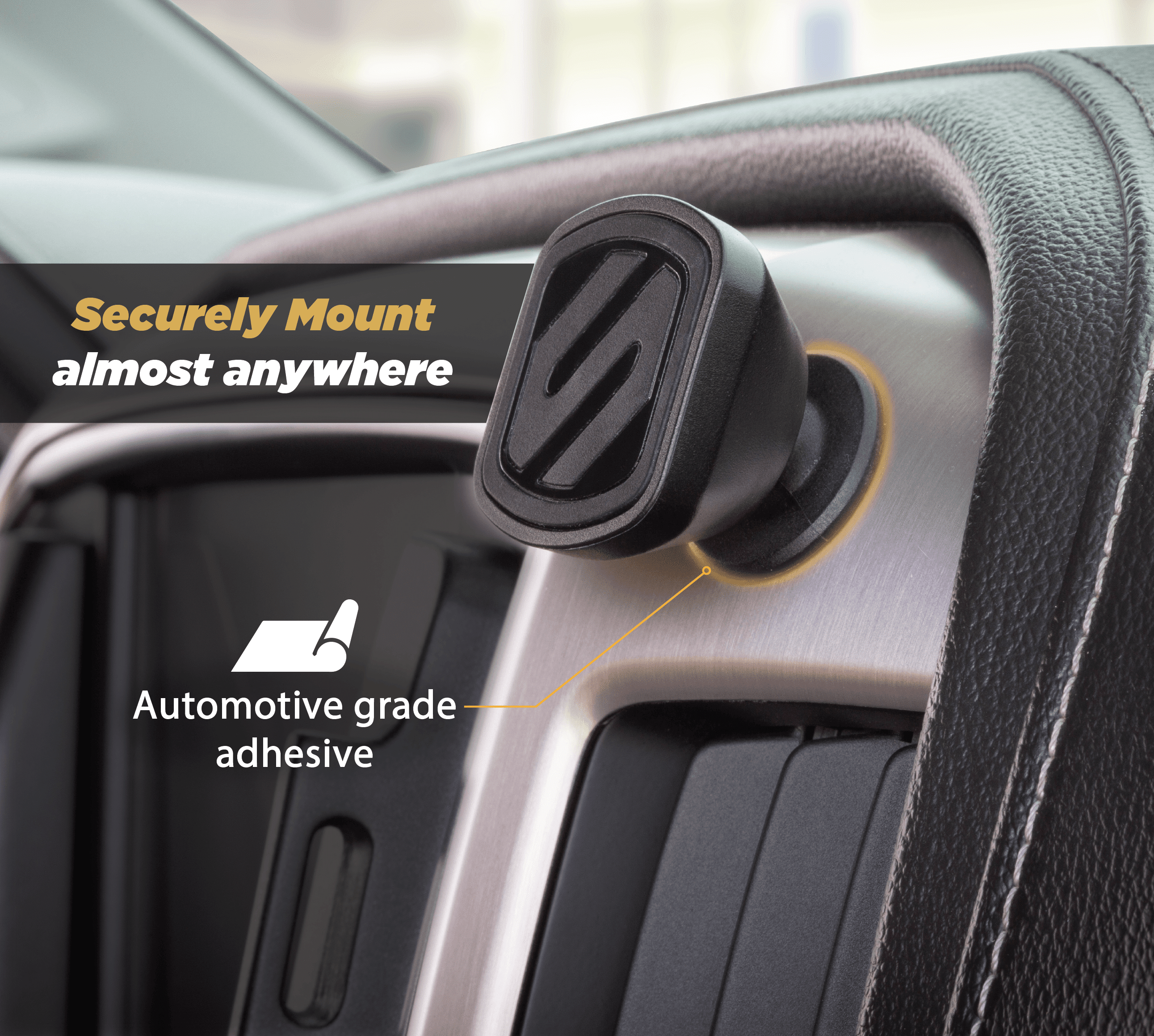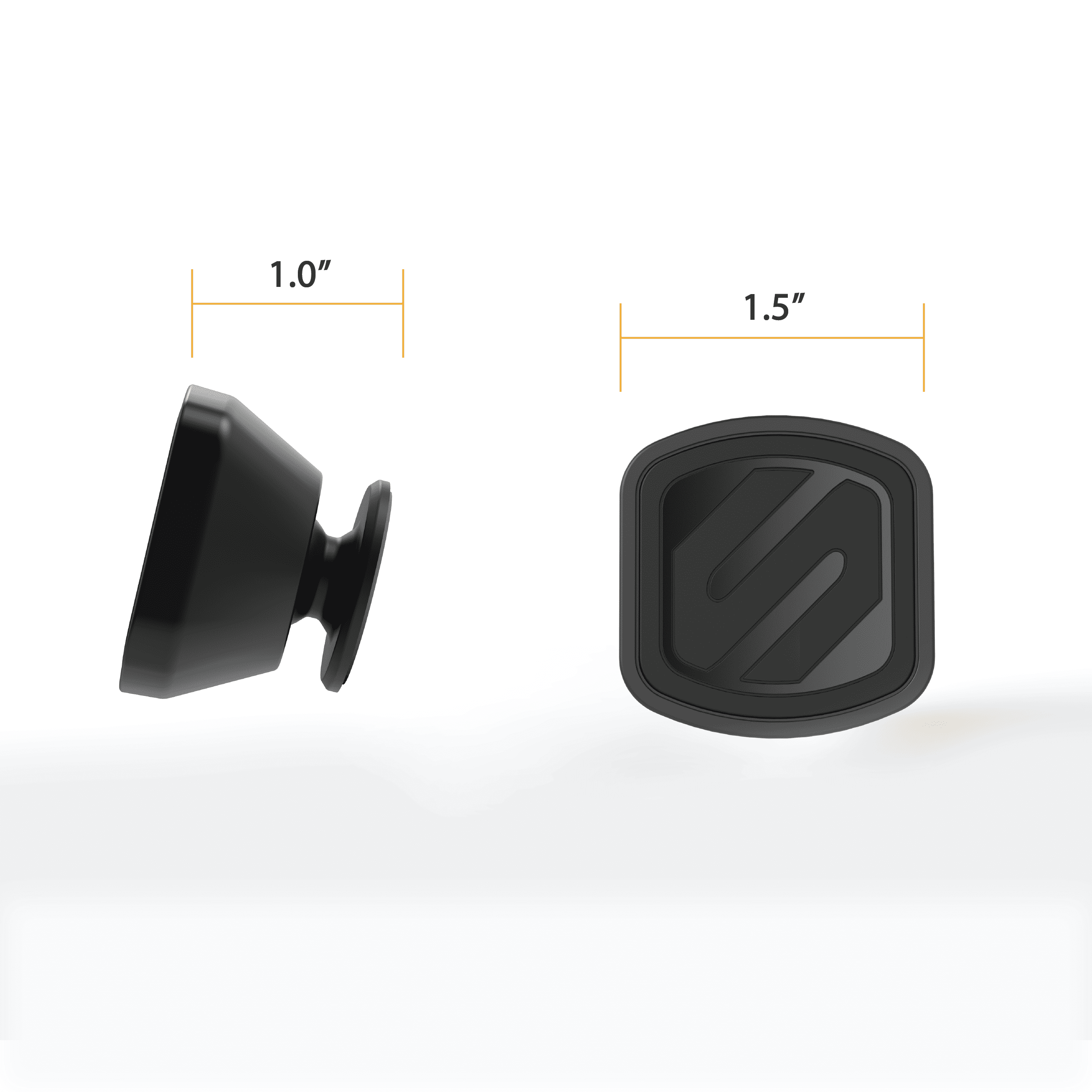 MagicMount Select vertical dash mini holder offers Scosche quality, at an exceptional price. This miniature mount conveniently mounts your Smartphone and other devices to the dashboard in your car, home or office. Use the strong, automotive grade adhesive to ensure an optimal mounting to almost any flat surface. At only 1.5? wide x 1? tall, easily store it or take it with you. Just hover your device near the magnetic surface to lock it instantly into place. Powerful, neodymium magnets hold your device in place even on the bumpiest roads and are 100% device safe. Install the MagicPlate behind your case or battery cover, directly to your rugged case or on your device. Includes two mounts, two automotive grade adhesives, two thin large and two thin small MagicPlates, two protective films, two alcohol cleaning wipes and one user manual.Safely and quickly secure a mobile device to a wide variety of firm & flat surfaces with the strong, automotive grade adhesive in your car, home or office surfaces.