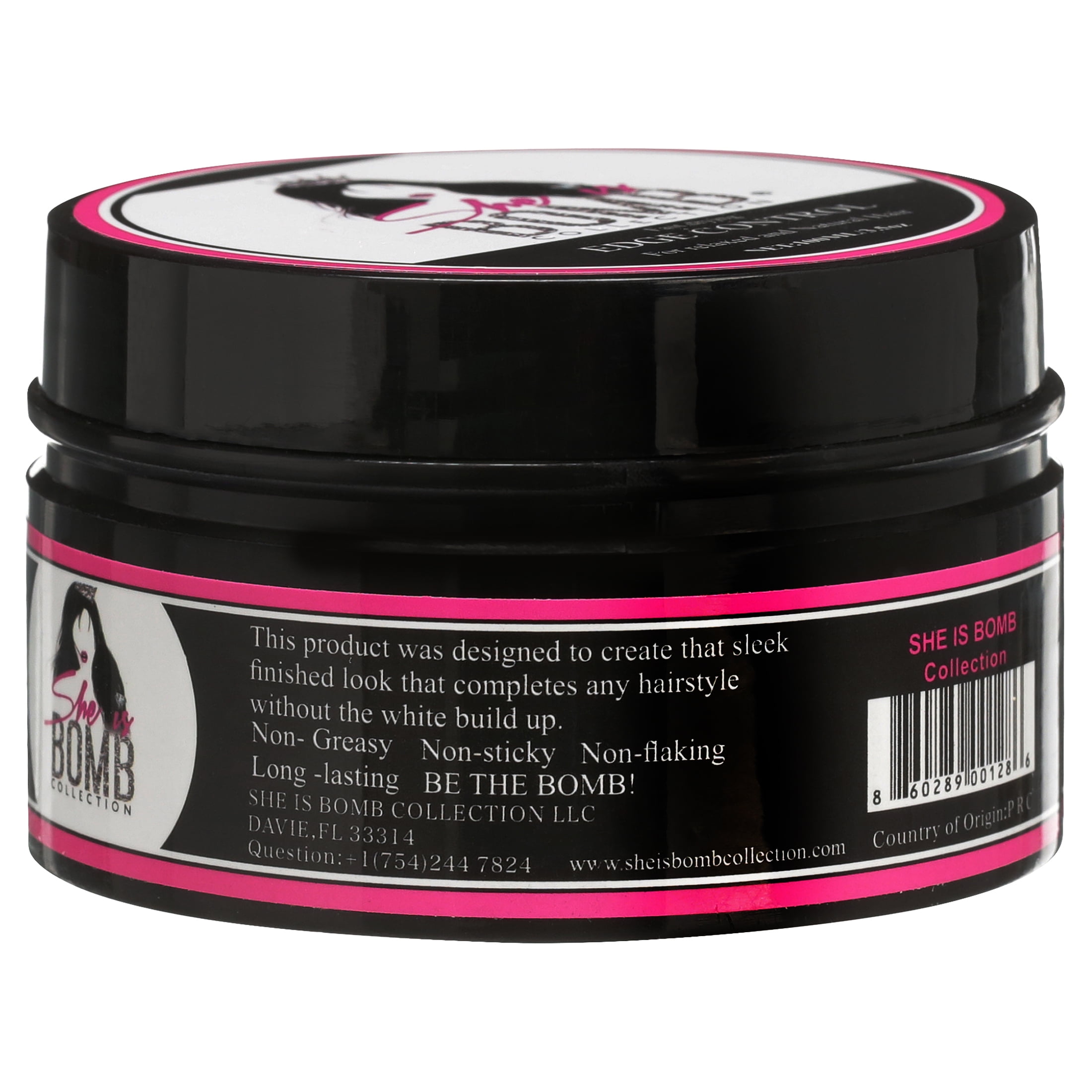 She Is Bomb Collection Edge Control is styling products. This product was designed to create that sleek finished look that completes any hairstyle without the white buildup. This is a fast drying edge control. It is Non-Greasy, Non-sticky, Non-flaking, and Long-lasting. She Is Bomb Edge Control each jar contains
