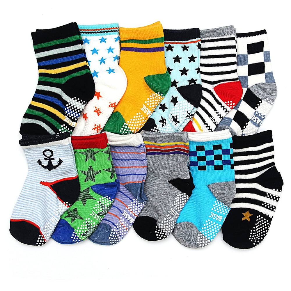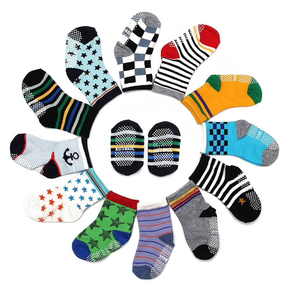 - 12-Pair Pack Gripper Socks in Pastel Colors And Cute Assorted Patterns for Boys and Girls (Unisex).